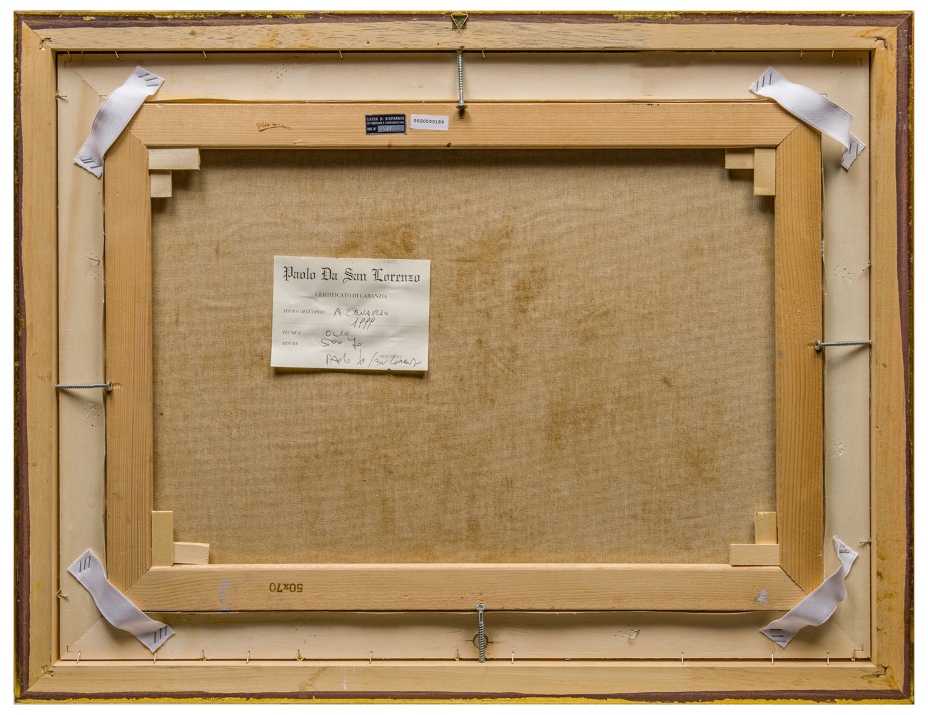 Certificati: sul verso, certificato di garanzia dell’artista con titolo e data