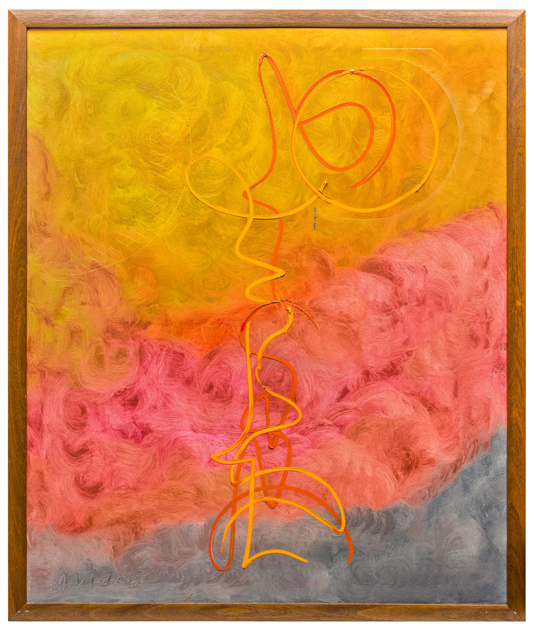 Stato di conservazione. Supporto: 70% (danni da urto e sfondamenti non risarciti: una importante lacerazione ed una lacerazione minore in alto a destra, leggendo il quadro in coerenza con la firma)