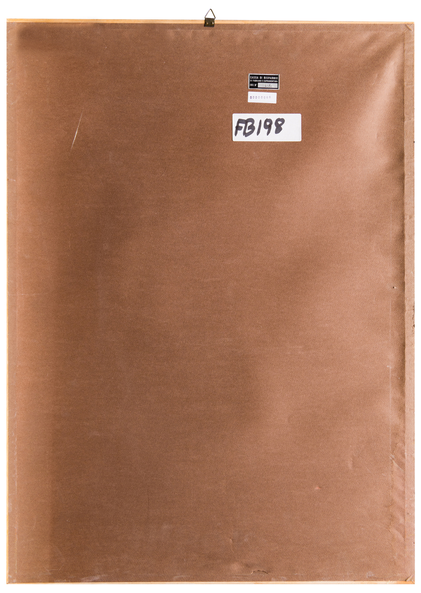 Elementi distintivi: sul verso, etichetta Cassa di Risparmio di Fabriano e Cupramontana con riferimenti di inventario