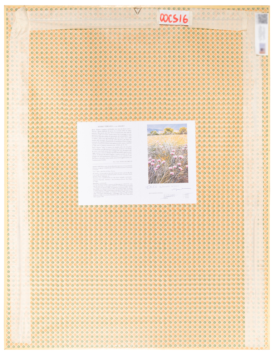 Elementi distintivi: sul verso, etichetta con informazioni sull’artista