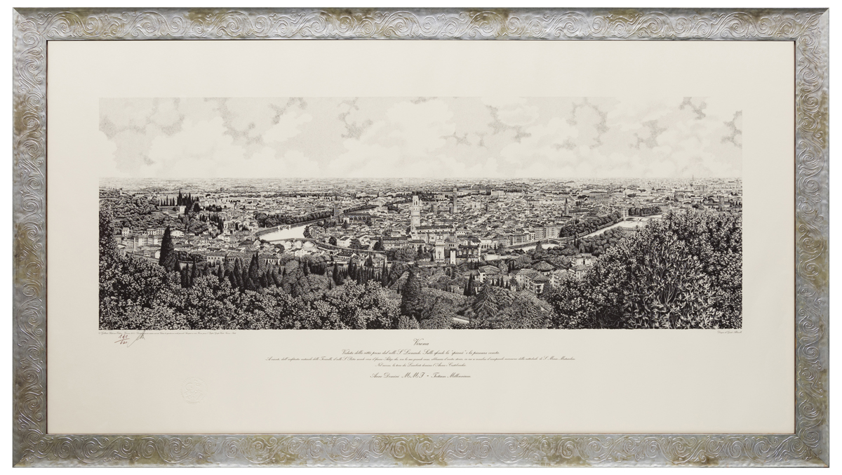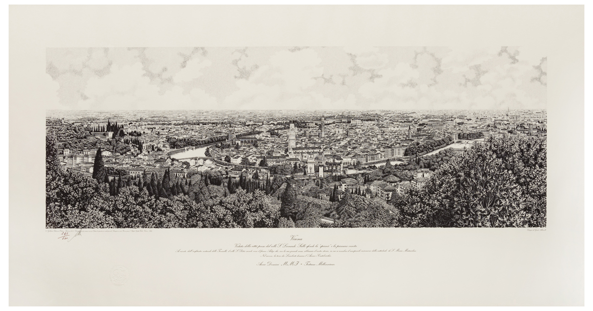 Altre iscrizioni: tiratura “181/600” al recto a inchiostro; “Verona”, “Disegno di Guido Albanello” in lastra