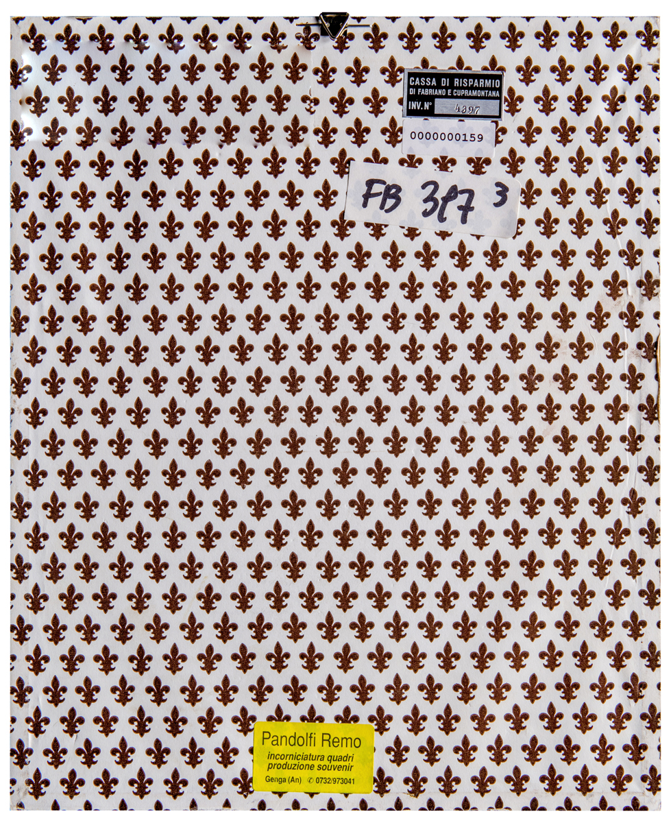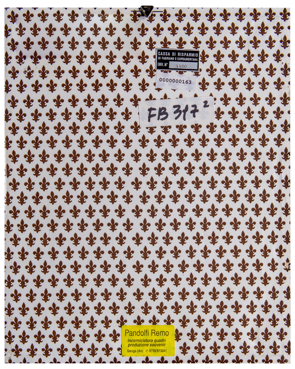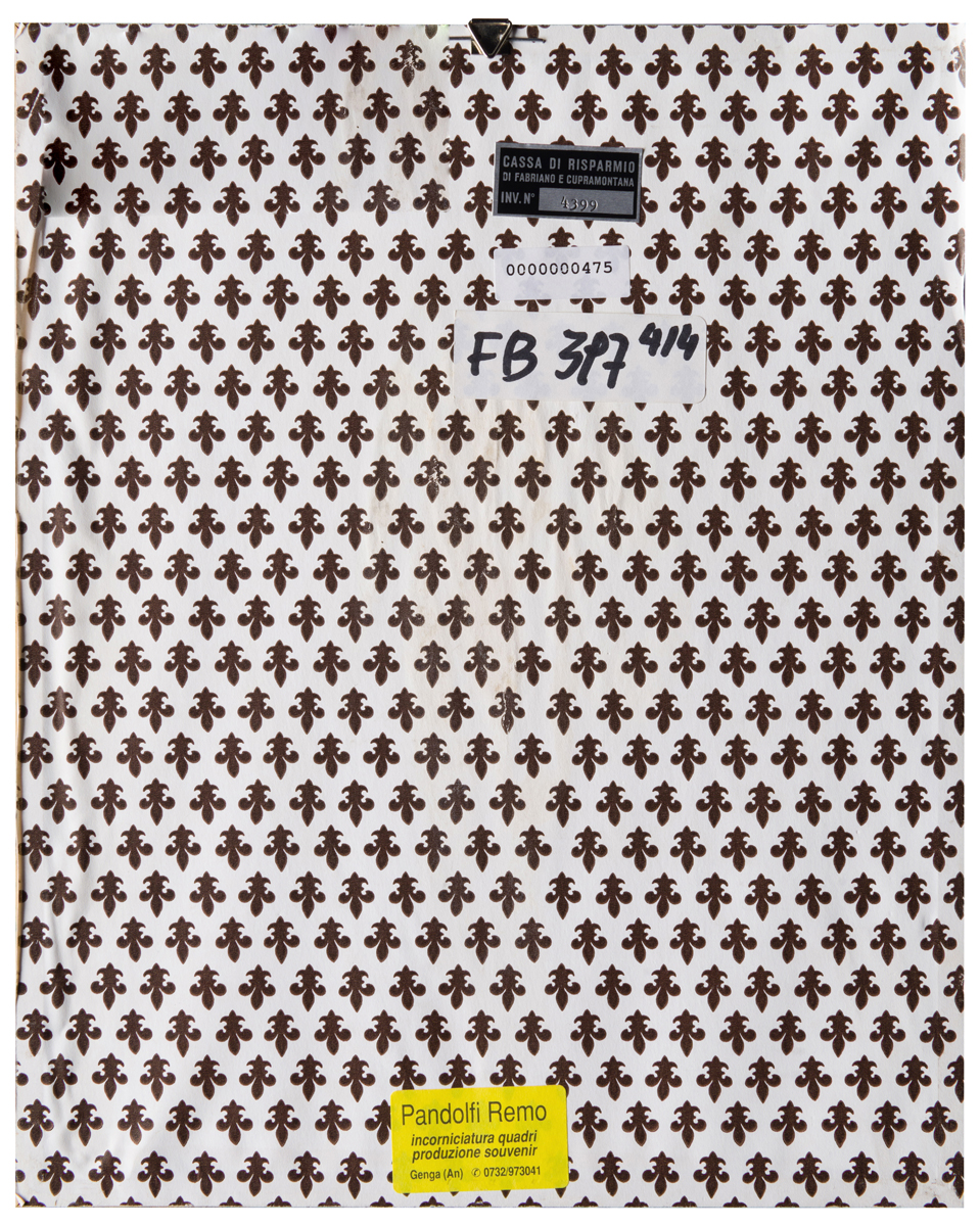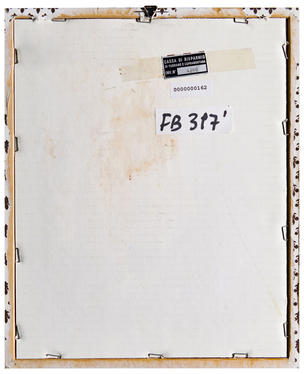 Elementi distintivi: sul verso, etichetta Cassa di Risparmio di Fabriano e Cupramontana con riferimenti di inventario ed analoga etichetta anonima