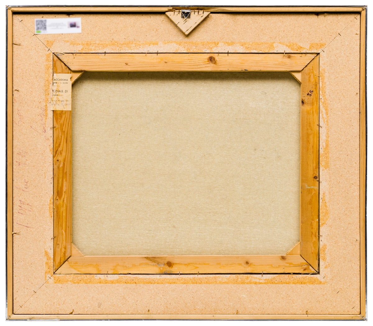 Elementi distintivi: sul telaio, frammento di etichetta di esposizione in cui è leggibile il nome “Accademia” stampato e parte del titolo “estate a Rondo”