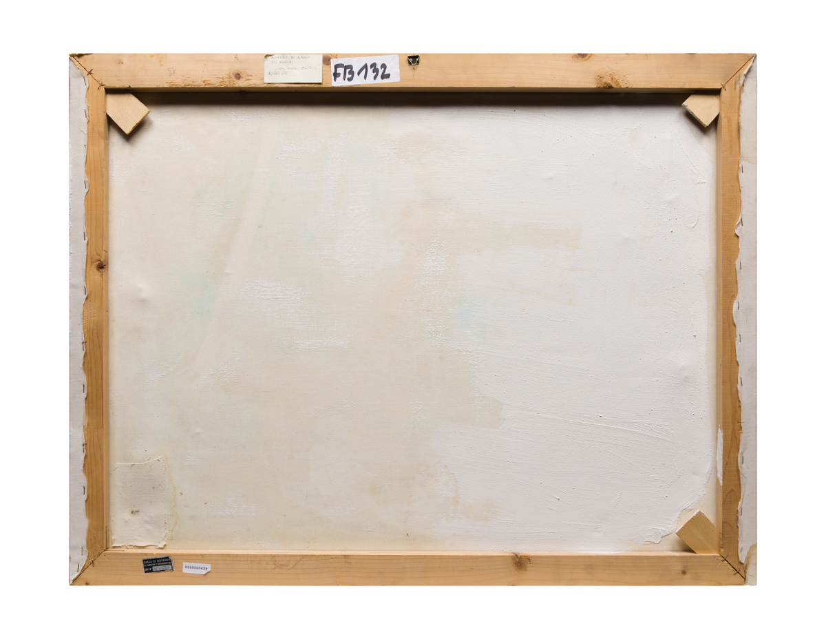 Elementi distintivi: etichetta della Cassa di Risparmio di Fabriano e Cupramontana con riferimenti di inventario; analoga etichetta anonima ed ulteriore etichetta anonima con dati dell'opera