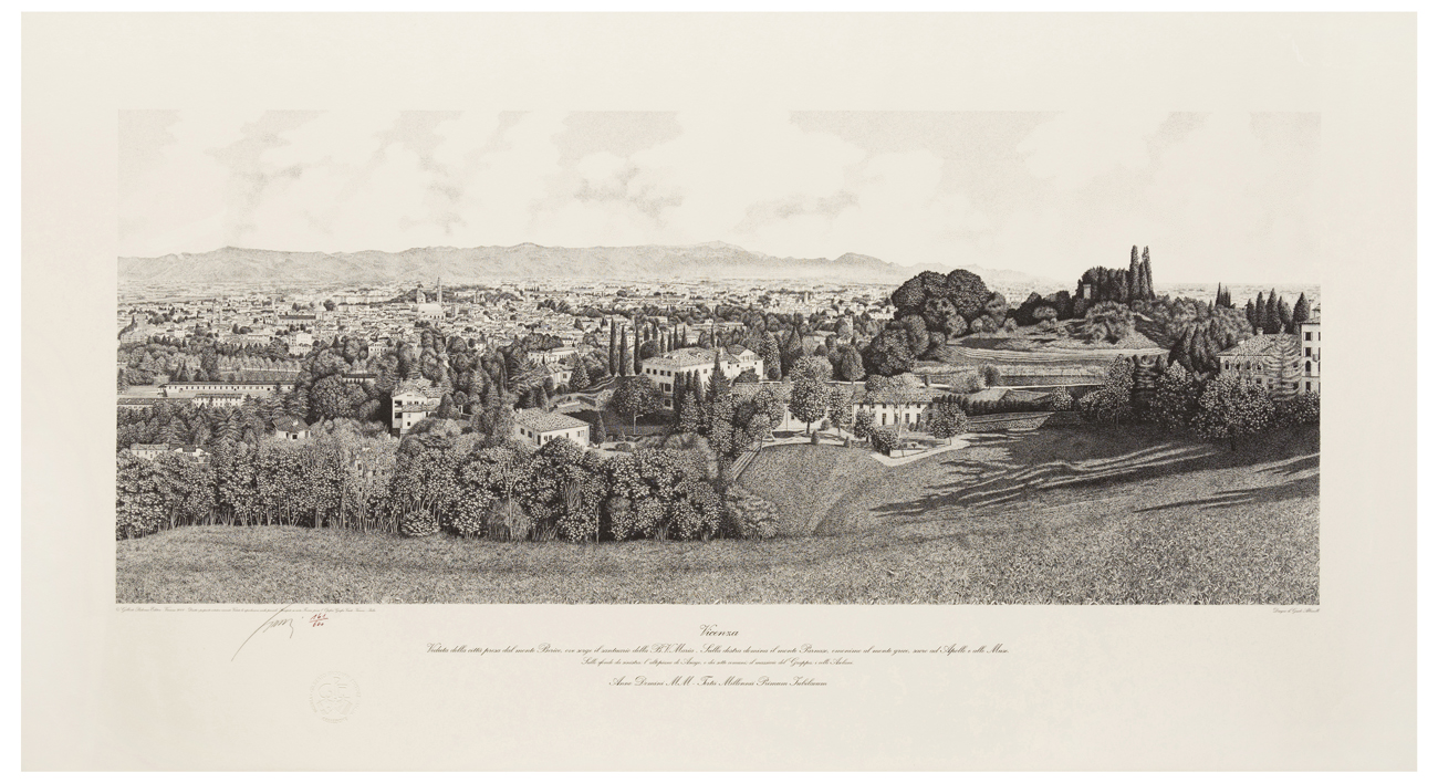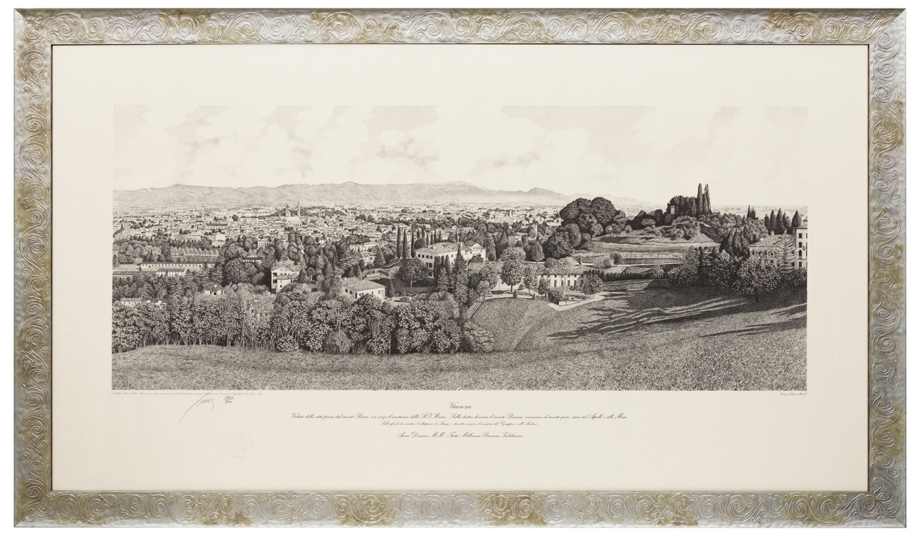 Altre iscrizioni: tiratura “161/600” al recto a inchiostro; “Vicenza”, “Disegno di Guido Albanello” in lastra;