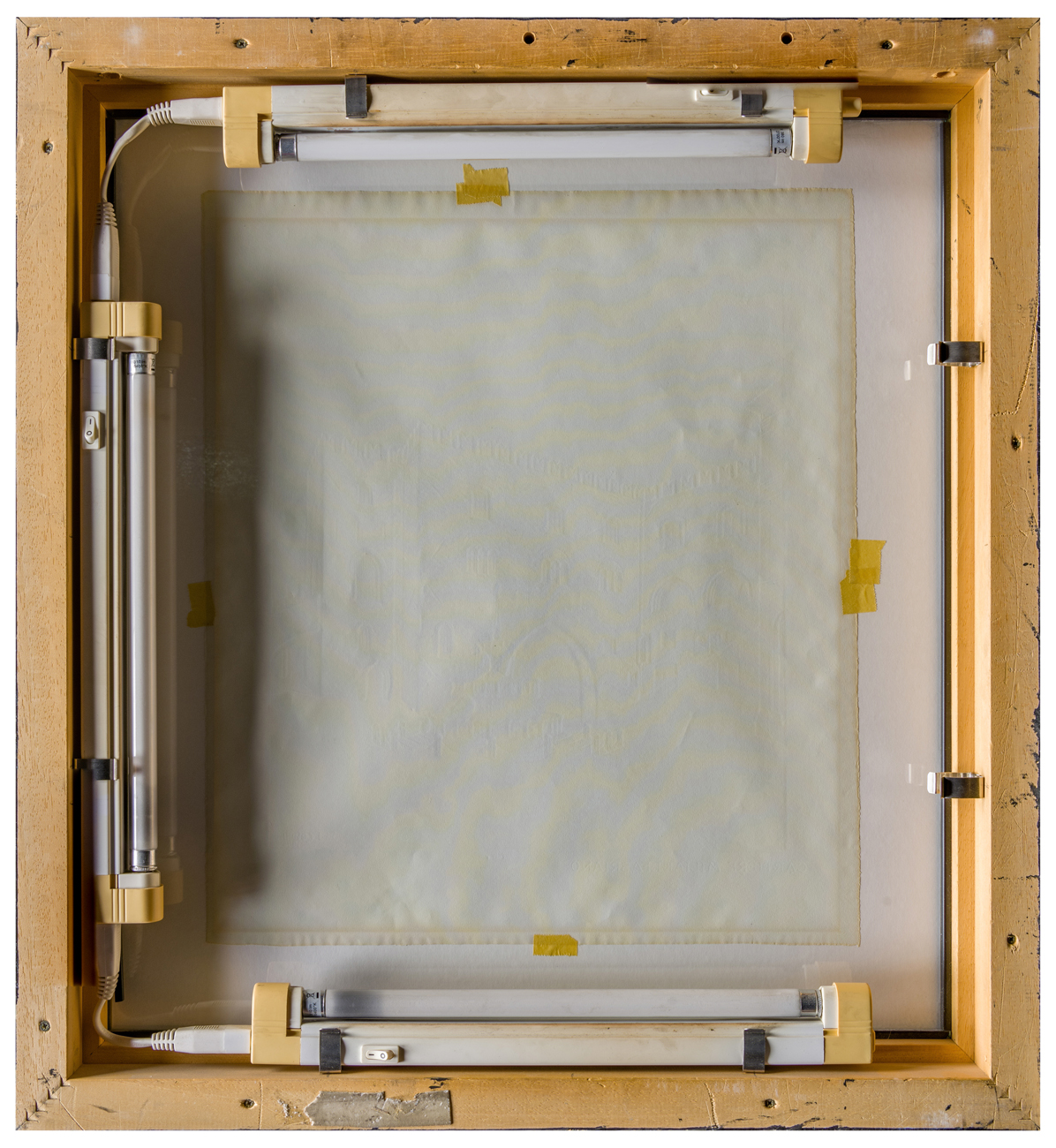 Stato di conservazione. Supporto: 80% (bandelle metalliche della cornice cedevoli; apparato elettrico non verificato)