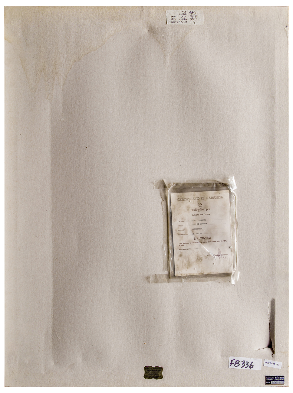 Certificati: certificato di garanzia "Sterling Europea" con dati dell'opera, al verso