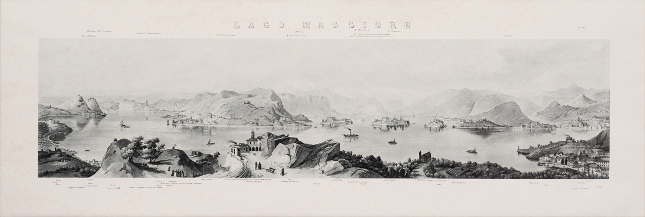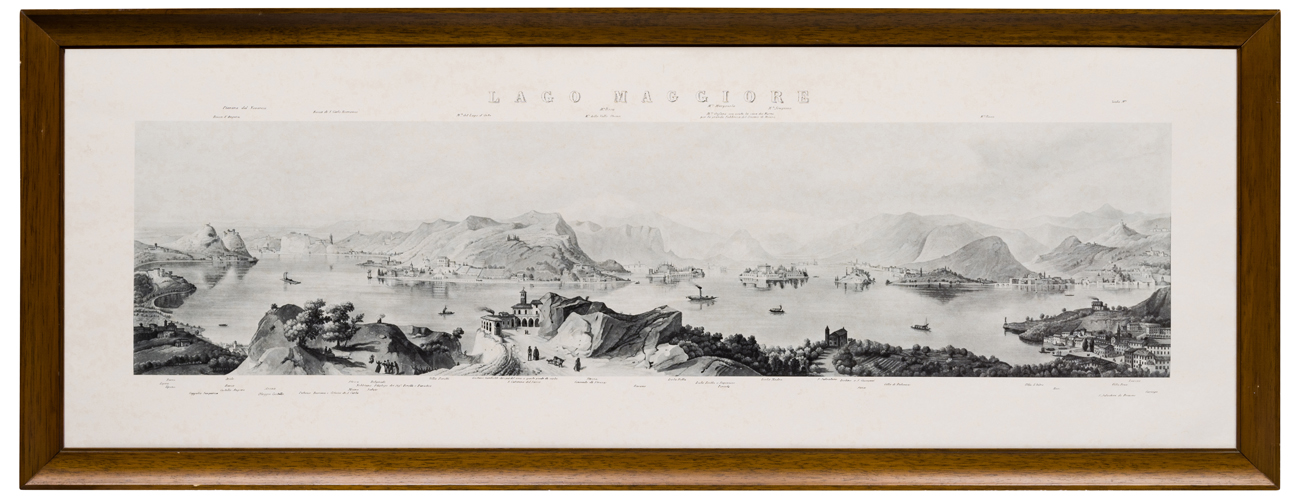 Il lotto include una seconda stampa, edizione moderna di una veduta commentata del Lago Maggiore.