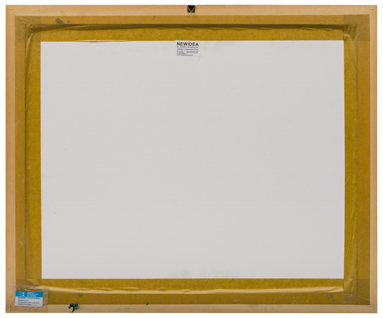 Elementi distintivi: al verso etichetta della produzione ed etichetta con riferimento all’inventario della banca