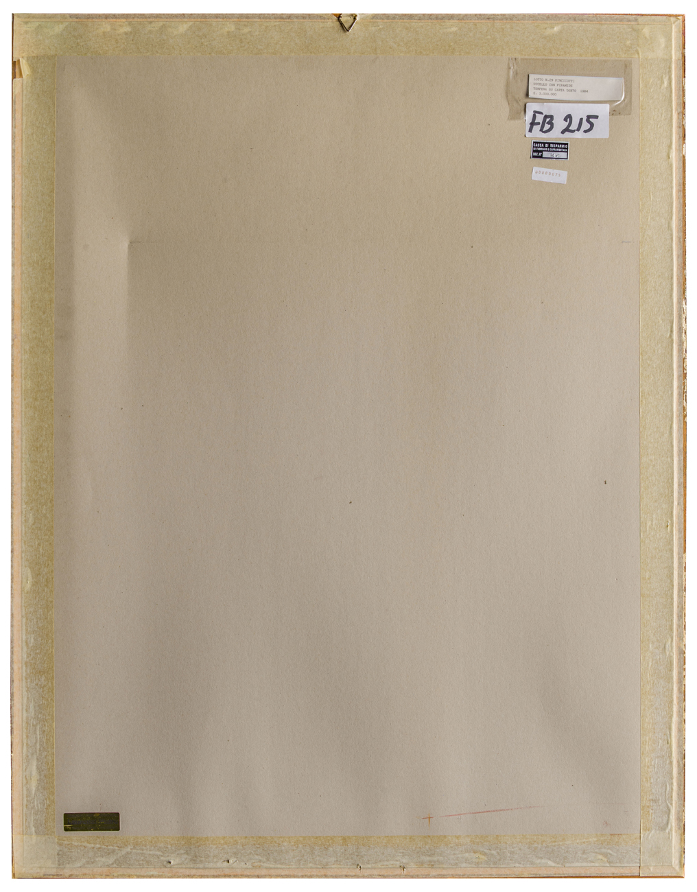 Elementi distintivi: sul verso, etichetta anonima con dati dell'opera; etichetta Cassa di Risparmio di Fabriano e Cupramontana con riferimenti di inventario