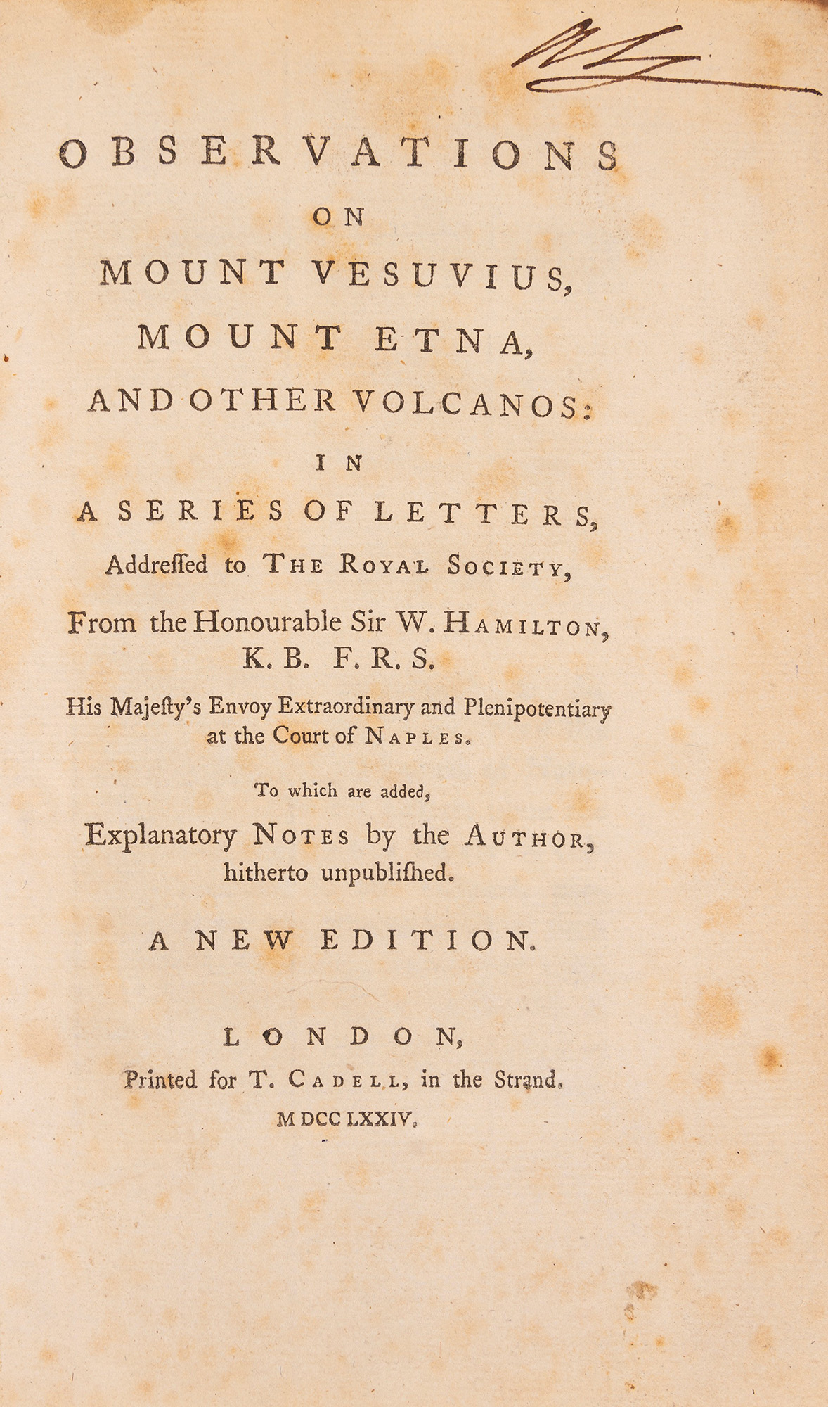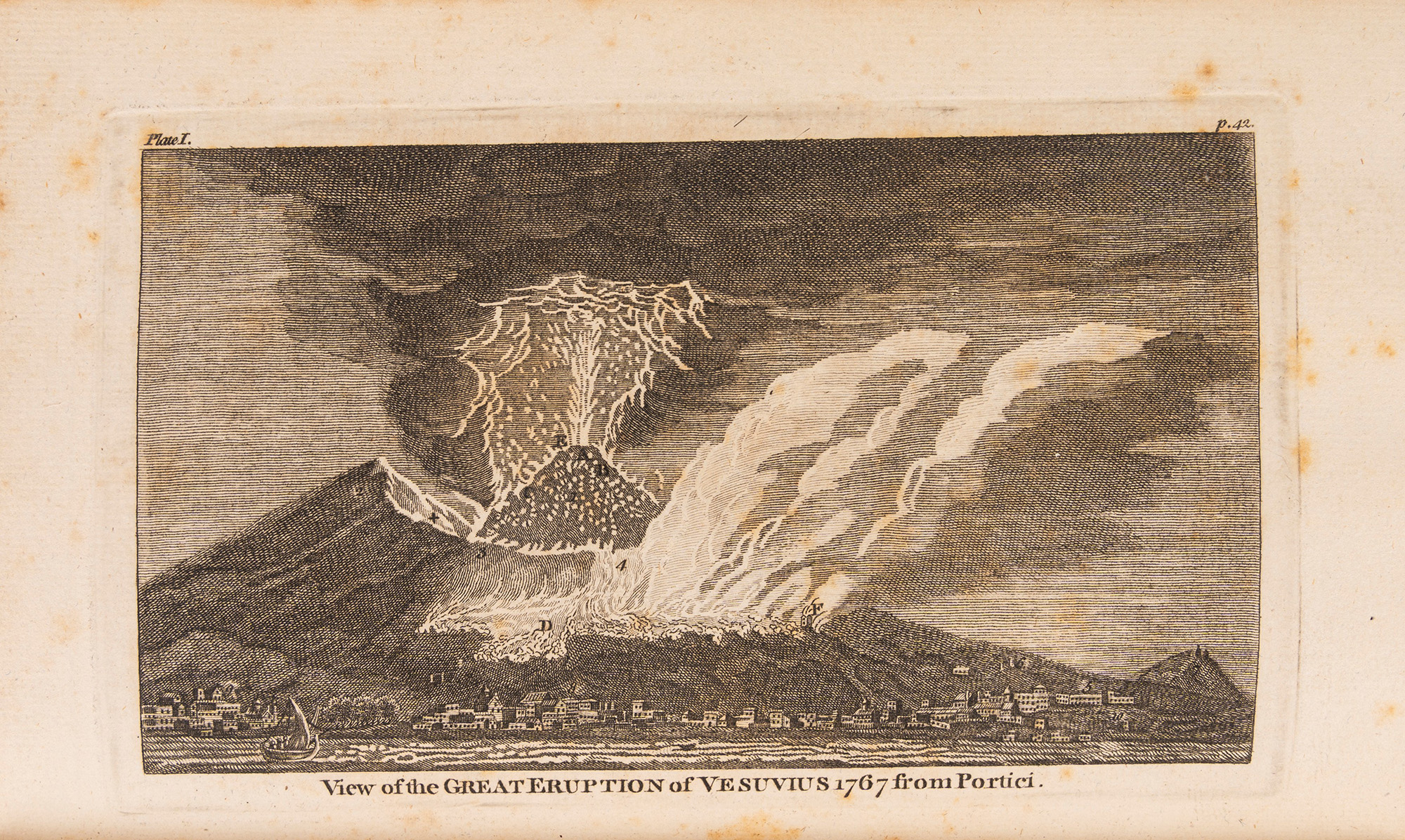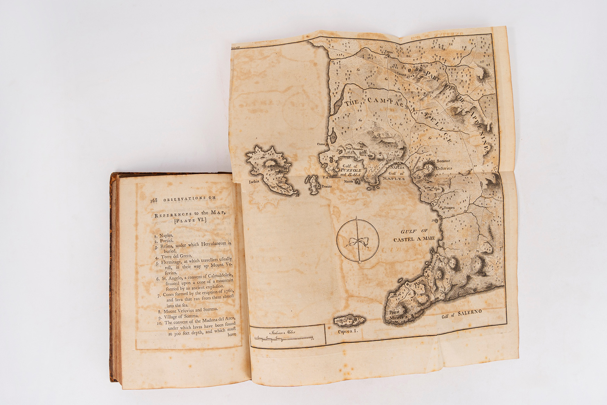 Londra,T. Cadell in the Strand, 1774. In 8°. Con 5 tavole a piena pagina incise in rame ed in fine volume grande carta geografica ripiegata del Golfo di Napoli, brunitura leggera, qualche lieve fioritura, legatura coeva in piena pelle, cornice in oro ai piatti, titolo in oro al dorso, piatto anteriore allentato, restauri e segni del tempo. Ex libris al contropiatto con le armi di Joshua Smith.