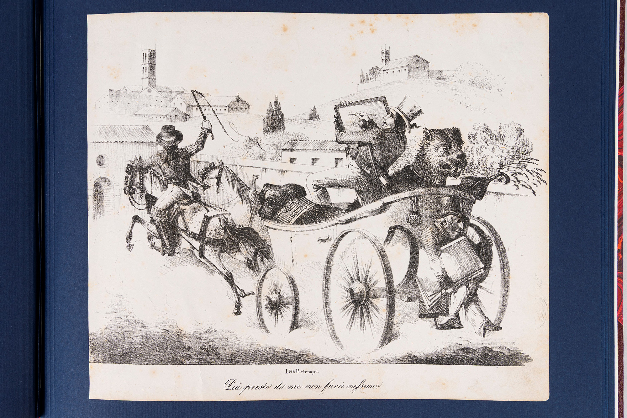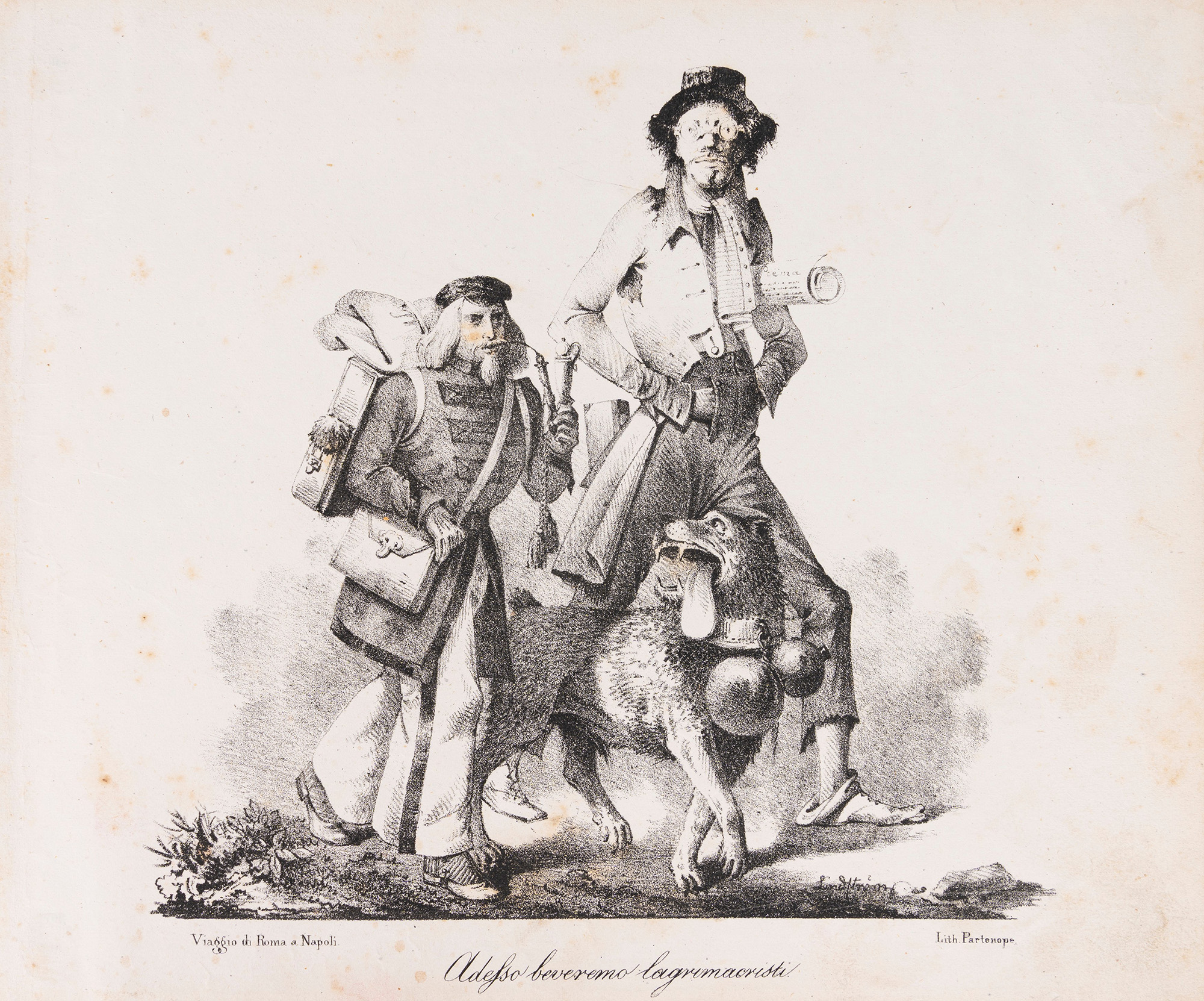 [Napoli], Lit. Partenope, [1833]. Album in 8° oblungo. Frontespizio e 24 litografie originali firmate in lastra e alcune datate in lastra, tavole montate su cartoncino blu, lievi fioriture, restauro al margine inferiore del frontespizio, legatura moderna in mezzo marocchino rosso con angoli e carta marmorizzata, titolo in oro al dorso.
