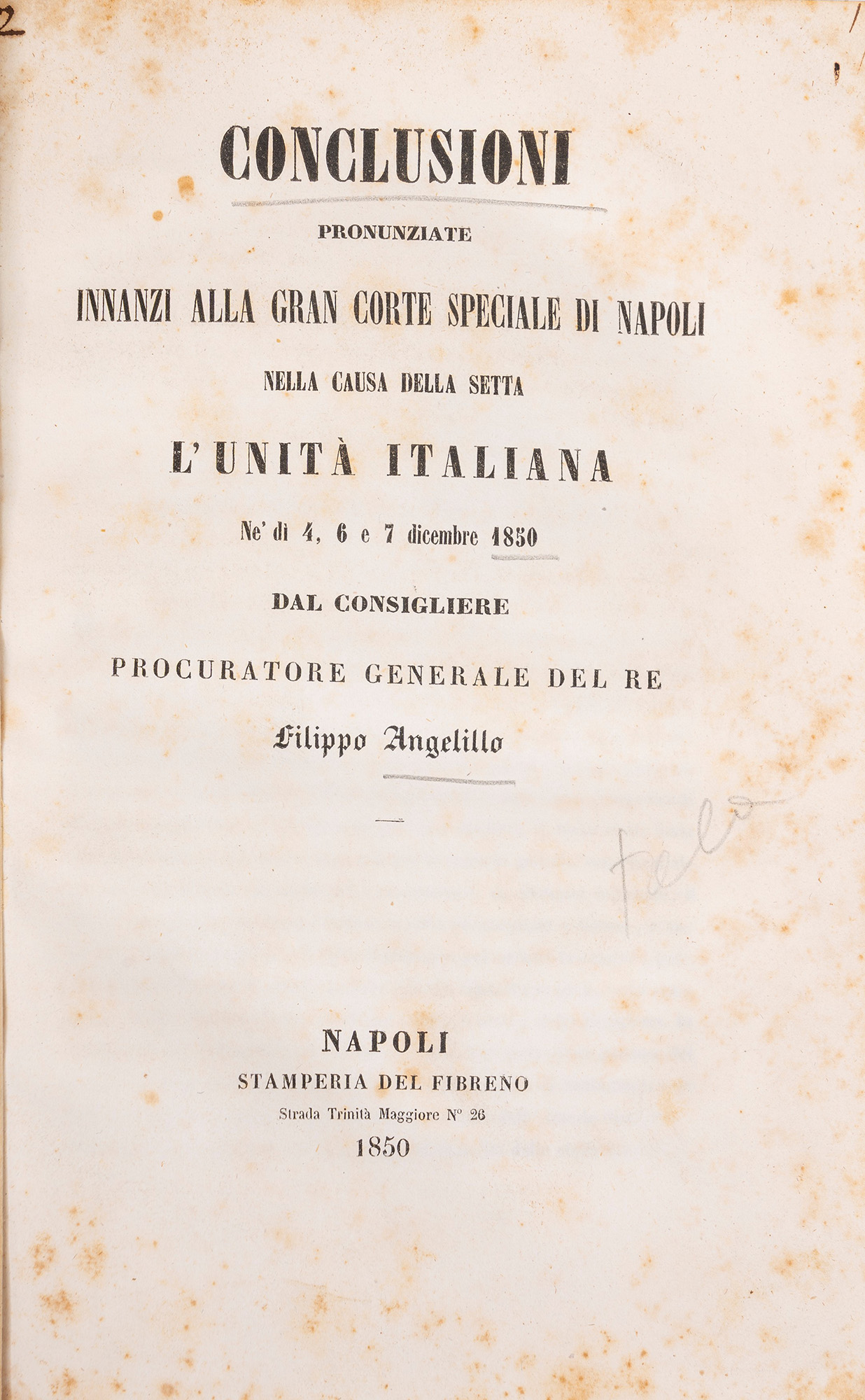Napoli, Stamperia del Fibreno, 1851. In 8°. 2 voll. Lievi fioriture, legature in mezza tela blu, titoli in oro. § Insieme nel lotto Sponzilli, F. Memoria sul preteso Porto Giulio, [s.l,s.e.,s.d]. In 2°. Con una grande tavola in fine al volume (piccolo strappo senza perdita), mancanza al margine superiore della prima carta, rilegato in cartoncino rigido, titolo in oro al dorso.
