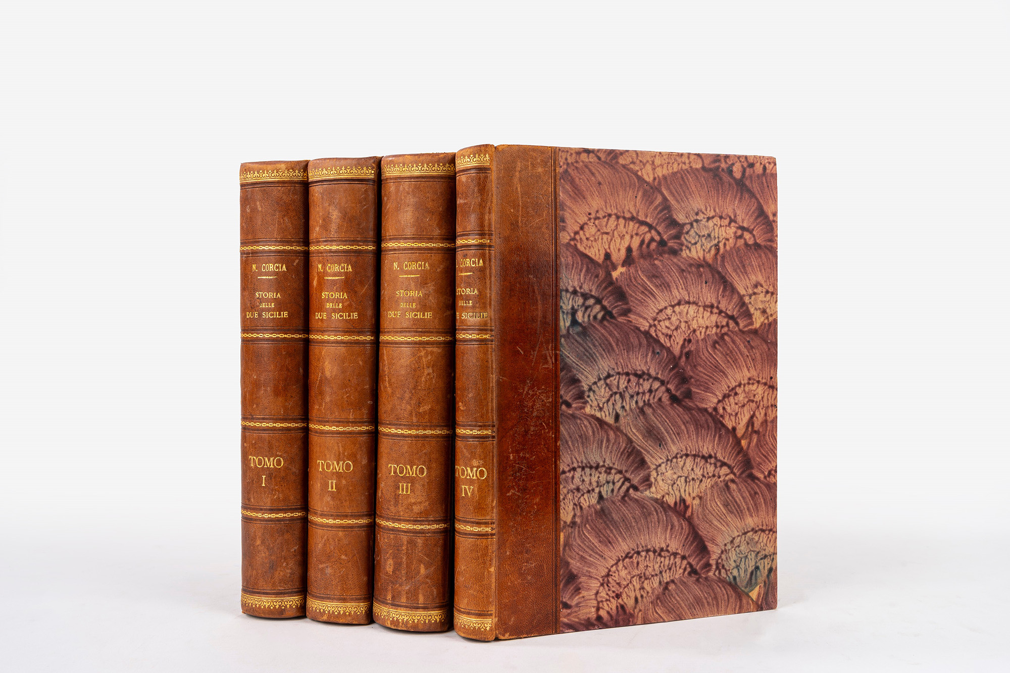 Napoli, Tipografia Virgilio, 1843-52. In 8°. 4 voll. Esemplari in barbe in ottime condizioni, legatura coeva in mezza pelle e carta marmorizzata, titolo in oro e fregi al dorso liscio, lievissimi segni del tempo.