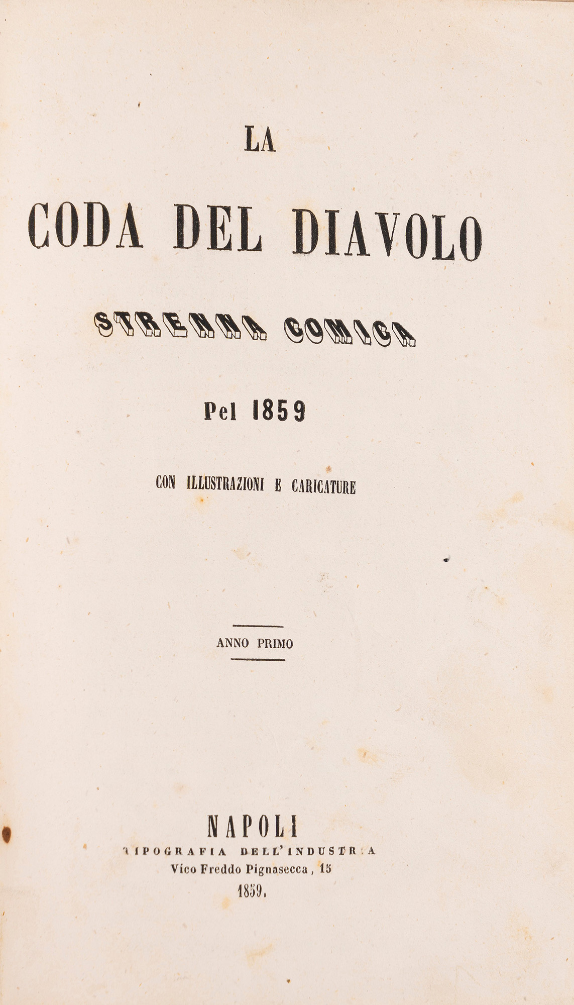Napoli, Tipografia dell'Industria, 1859. In 4°. Numerose tavole fuori testo cromolitografiche, legatura coeva in seta rossa con decorazioni in oro. Insieme nel lotto altre tre strenne: La Sirena del 1861, La Vivandiera di Garibaldi ovvero Strenna patriotica salentina del 1865, La Sirena del 1858.