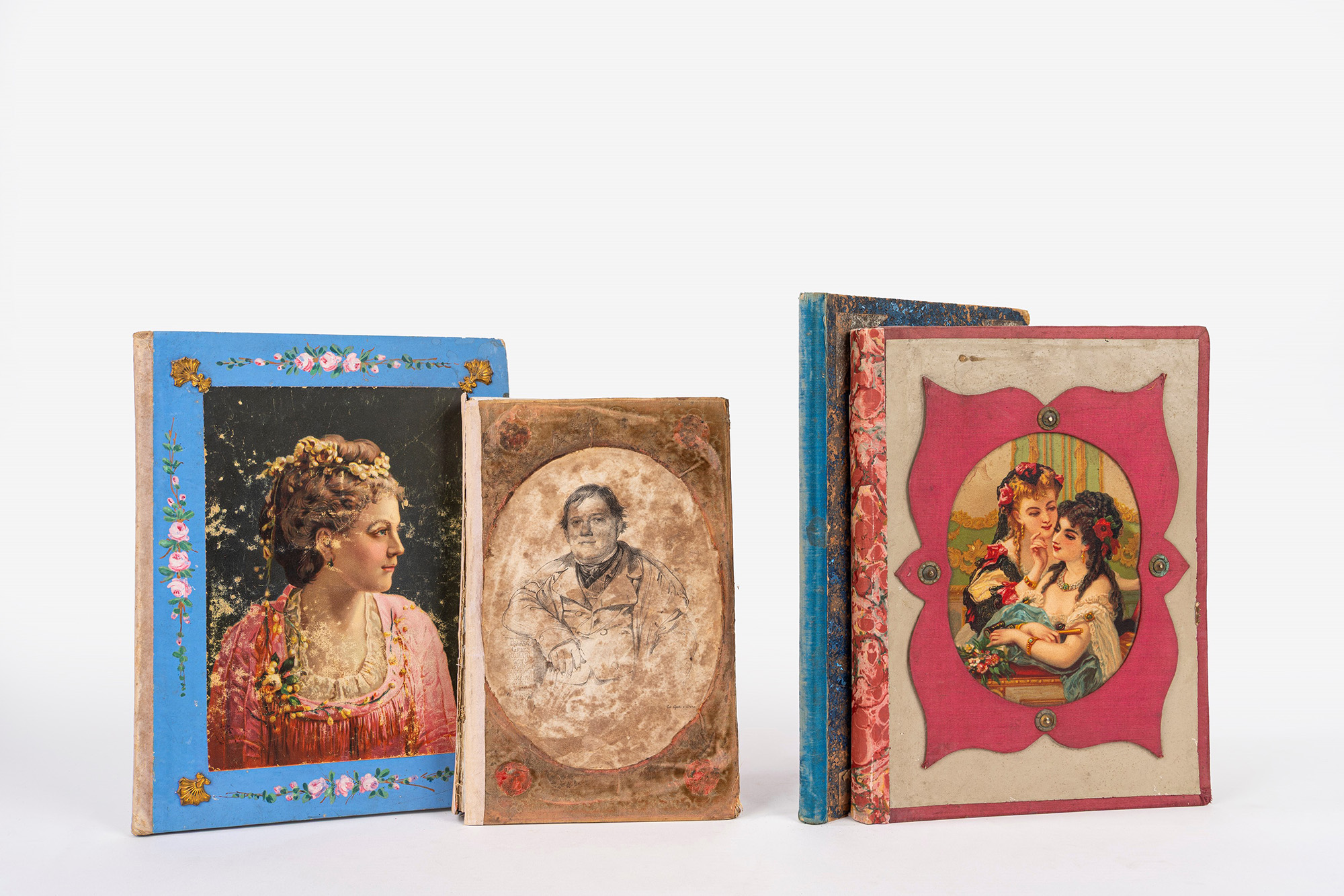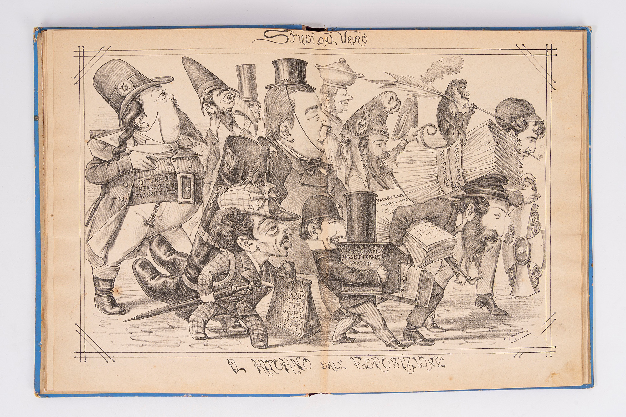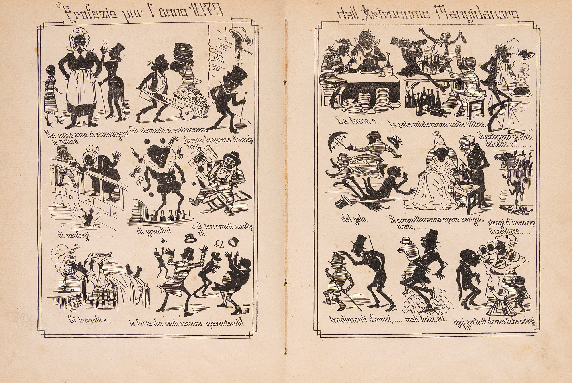 Napoli, De Angelis e figlio, 1879. In 8°. Con numerose illustrazioni nel testo, lievi bruniture e fioriture, legatura in mezza tela e cartoncino rigido, con al centro dei piatti ritratto di donna inquadrato da cornice floreale e fregi dorati in rilievo, lievi difetti. Insieme nel lotto altre 3 Strenne: Strenna dello Stenterello pel 1877; Strenna dello Stenterello pel 1878; La Sirena Augurio pel Capodanno Anno X, Napoli, Stamperia del Fibreno, 1856 (piatto anteriore staccato).