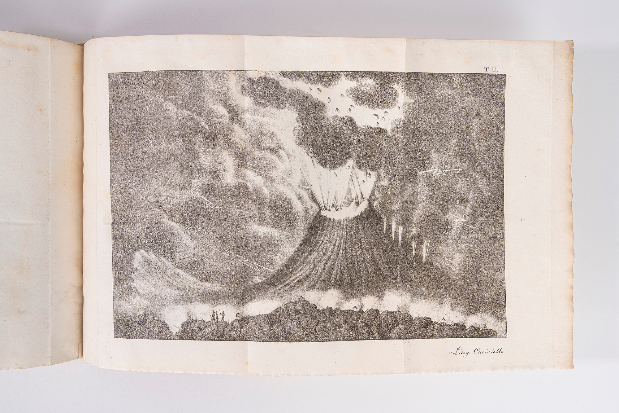 Napoli, Gabinetto Bibliografico e Tipografico, 1823. In 8°. Marca tipografica al frontespizio, completo delle 4 tavole litografiche ripiegate in fine al volume, 1 tabella ripiegata, lievi fioriture e qualche piccolo alone di umidità, restauro al margine superiore bianco di pag. 5, legatura coeva in mezza pergamena rigida con angoli e carta marmorizzata, titoli in oro entro tassello al dorso. § Del Giudice, Francesco. Brevi considerazioni intorno ad alcuni più costanti fenomeni vesuviani, Napoli, Stabilimento tipografico del real ministero dell'interno, 1855. Con 7 tabelle ripiegate, lievi fioriture, brossura originale conservata entro legatura di epoca successiva in cartoncino marrone. § Insieme nel lotto La Catastrofe di Pompei sotto l'incendio vulcanico del 79 ed il Vesuvio, Napoli, Stamperia della R. Università , 1872. Leggera brunitura e lievi fioriture, brossura gialla, piatto anteriore staccato.