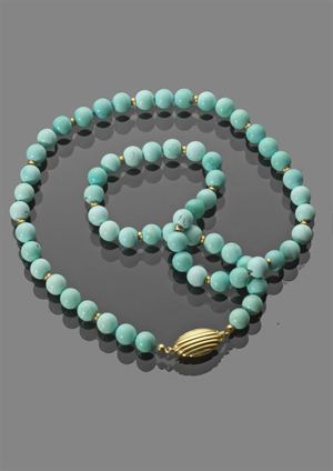 COLLANA Collana di turchesi . Fermaglio e distanziali in oro giallo Turquoise...