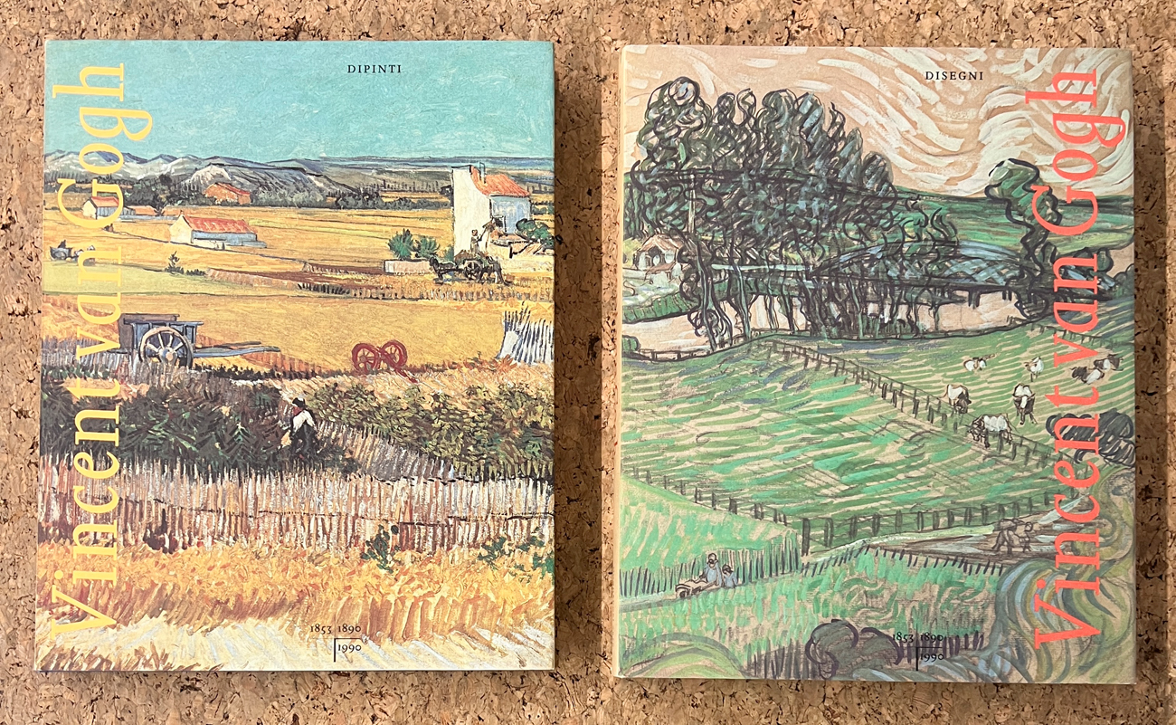 Cofanetto contenente 2 cataloghi riccamente illustrati: 'Vincent Van Gogh. Dipinti' e 'Vincent Van Gogh. Disegni', editi in occasione delle esposizioni tenutesi presso Rijksmuseum Vincent Van Gogh, Amsterdam e Otterlo, 1990
