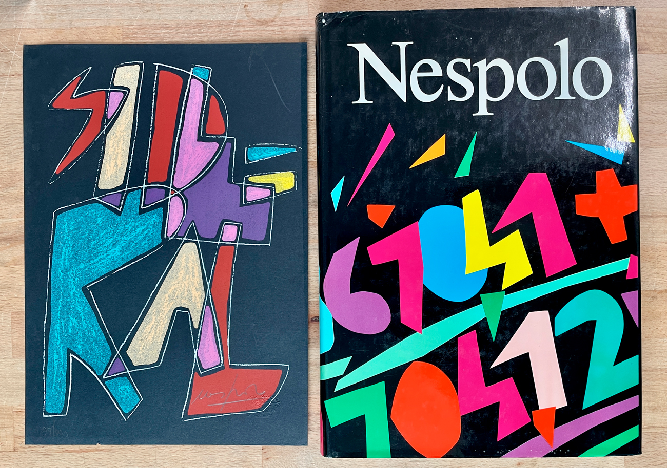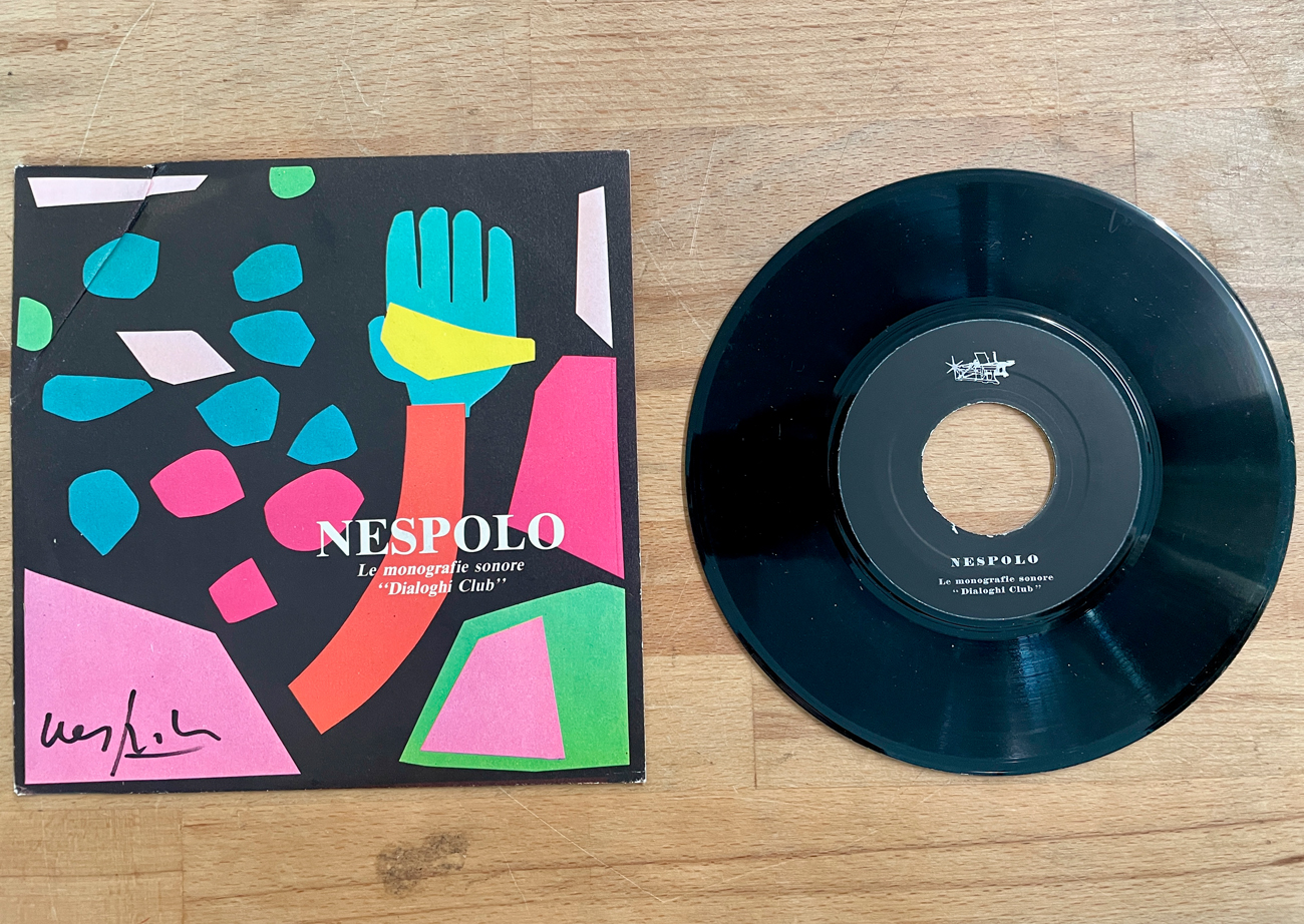 Catalogo riccamente illustrato, a cura di Janus, edito per la collana 'Le monografie sonore' di Dialoghi Club, contenente una litografia originale di Ugo Nespolo recante firma e numerazione (Esemplare 79/100) a matita al fronte