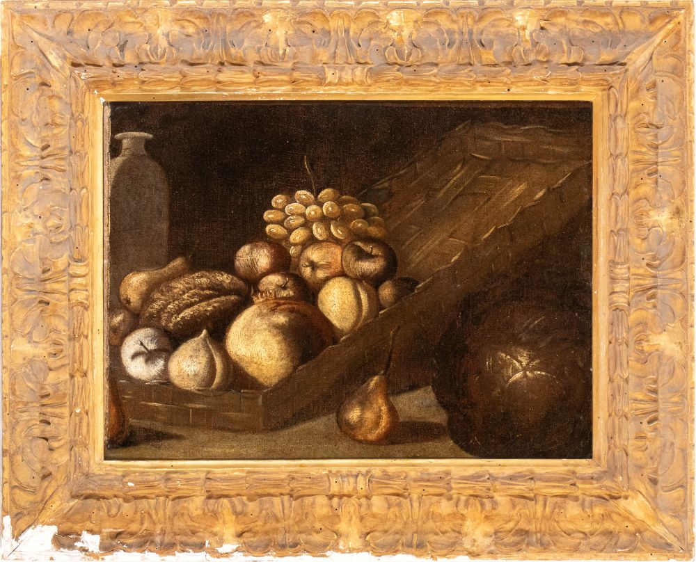 Still life of fruit in a basket Oil on canvas cm. 45x60. Framed Private collection, Campania.