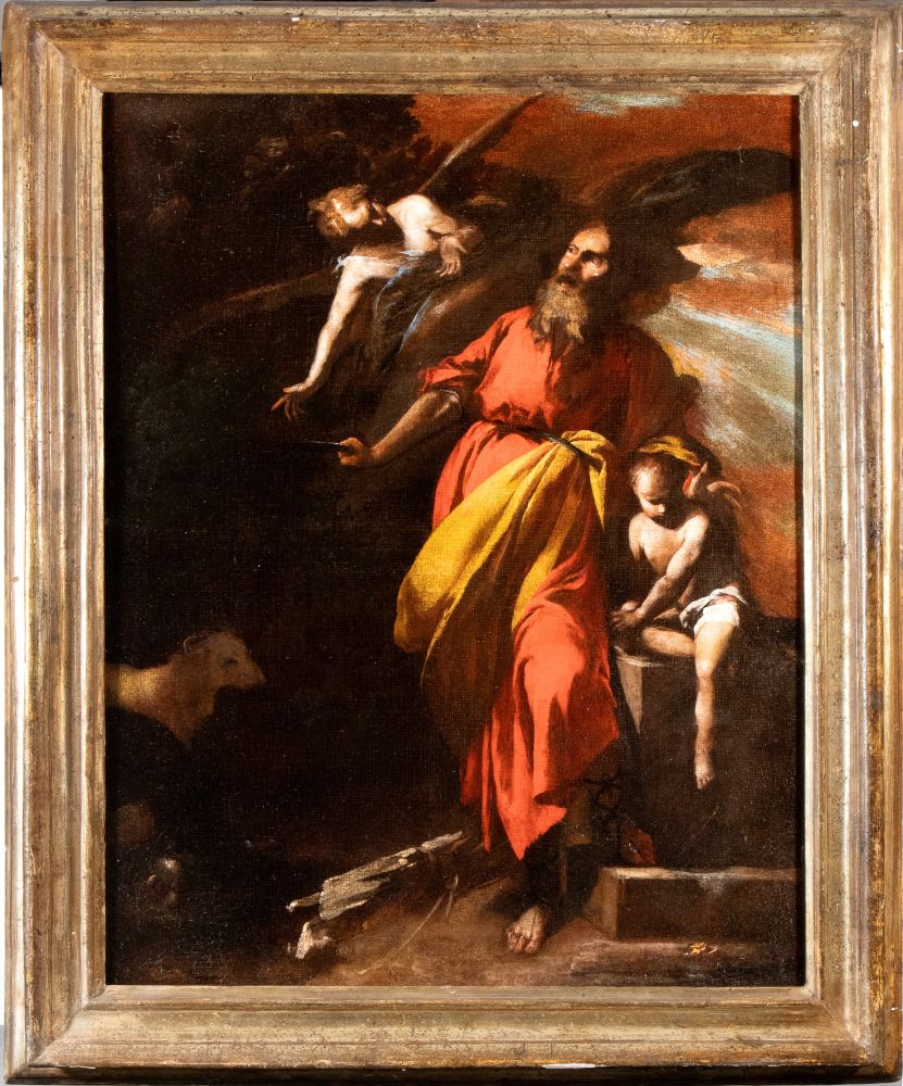 Sacrifice of Isaac Oil on canvas cm. 65x50. Framed The painting has been confirmed as the work of Antonio de Bellis by Prof. Nicola Spinosa and Prof. Stefano Causa.
