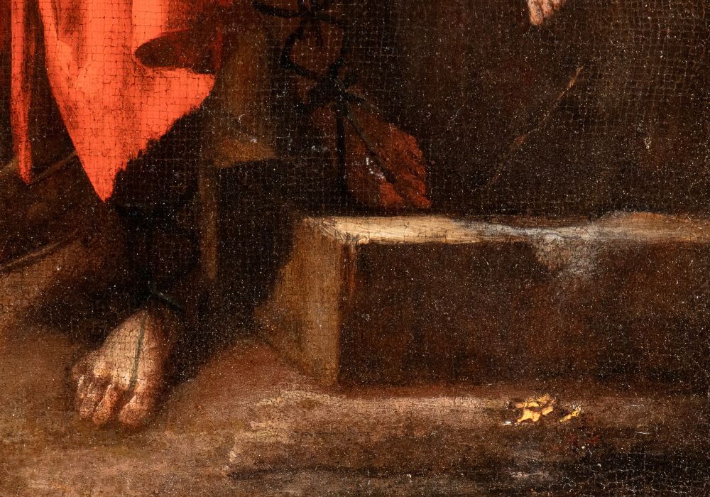 This refined Sacrifice of Isaac replaces the subject’s customary drama with a stylized, almost abstract elegance of pose and may be attributed to Antonio De Bellis. The attribution is supported by close comparisons with securely related works, including examples in Houston, Budapest, and Bitonto. The vivid chromaticism and luminous flesh tones reflect De Bellis’s mid-seventeenth-century neo-Venetian turn, revealing affinities with Bernardo Cavallino and a synthesis of classical grace and post-Caravaggesque naturalism. Galerie Canesso, Paris; private collection, Italy.