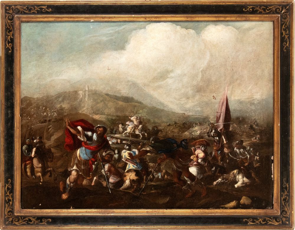 Battle in open field Oil on canvas cm. 89x118,5. Framed Private collection, Rome.