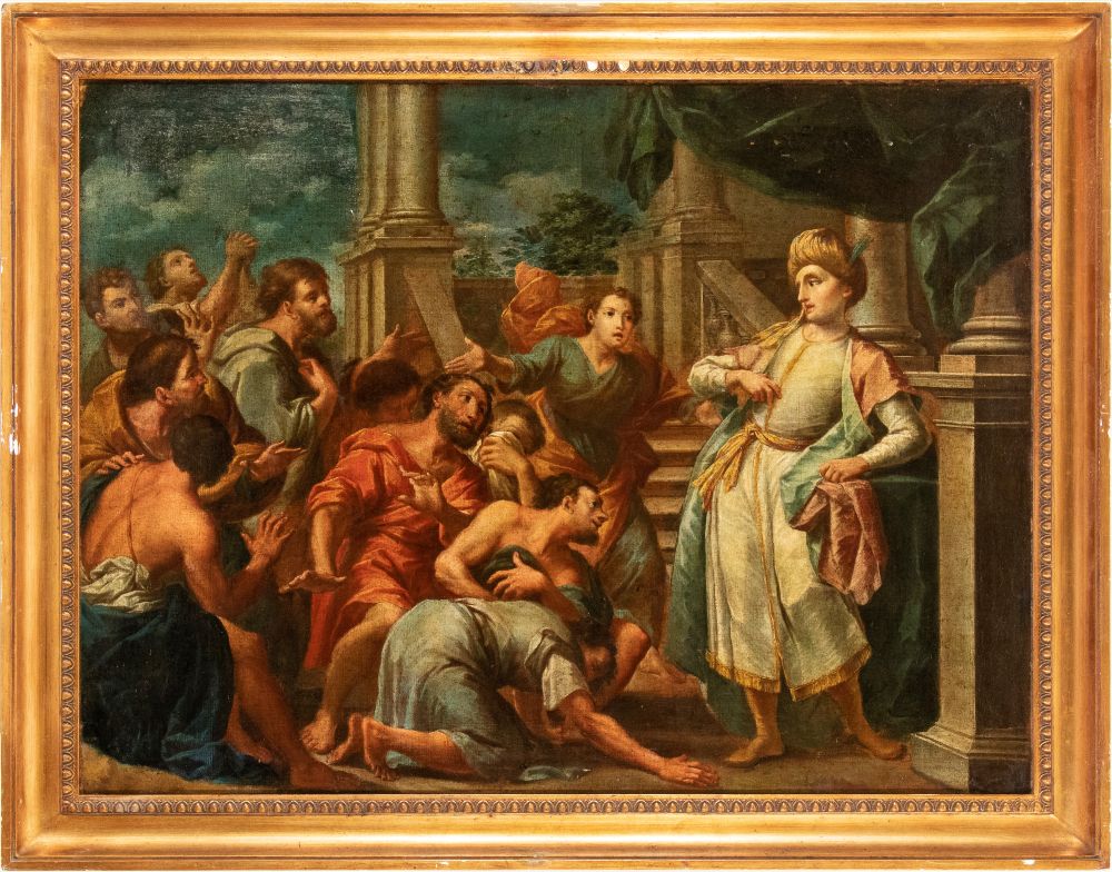 Joseph and his Brothers Oil on canvas cm. 76x100. Framed