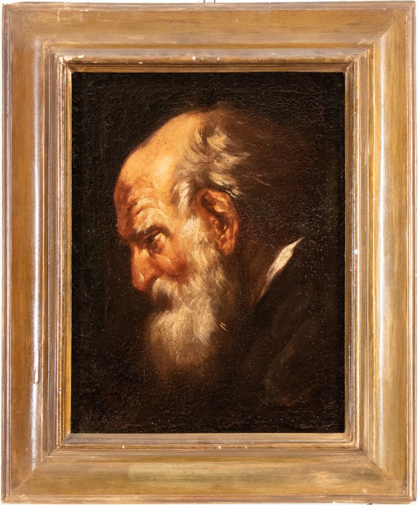Head of an elderly man in profile Oil on canvas cm. 50x36. Framed