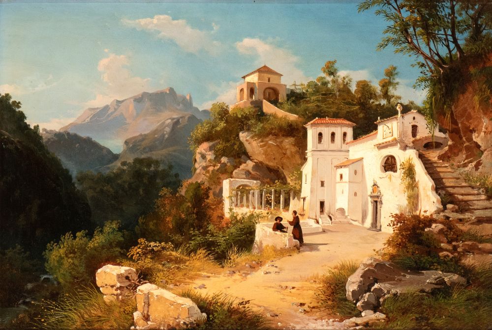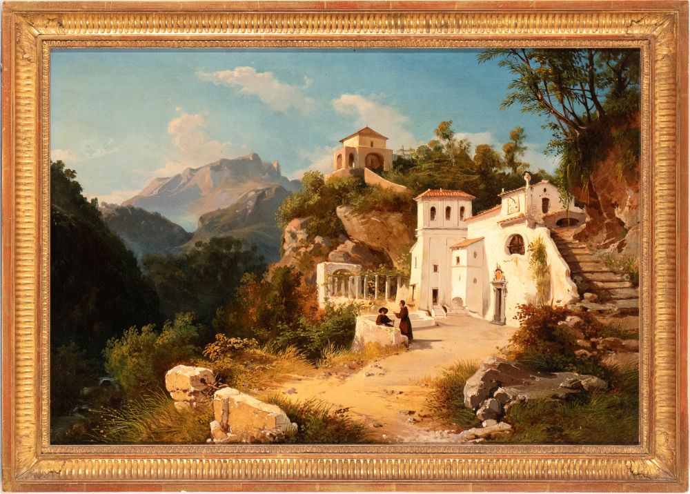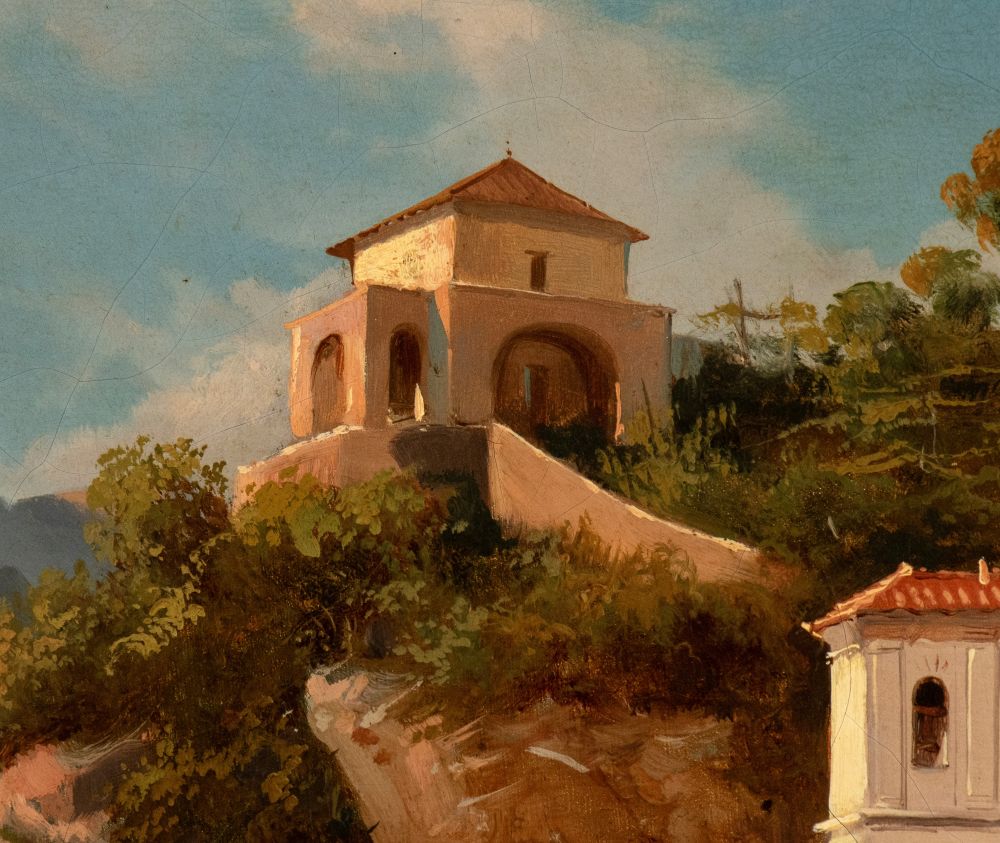 Landscape with the sanctuary of the Avvocatella at Cava dei Tirreni Oil on canvas cm. 44,5x65. Framed Private collection, Rome.