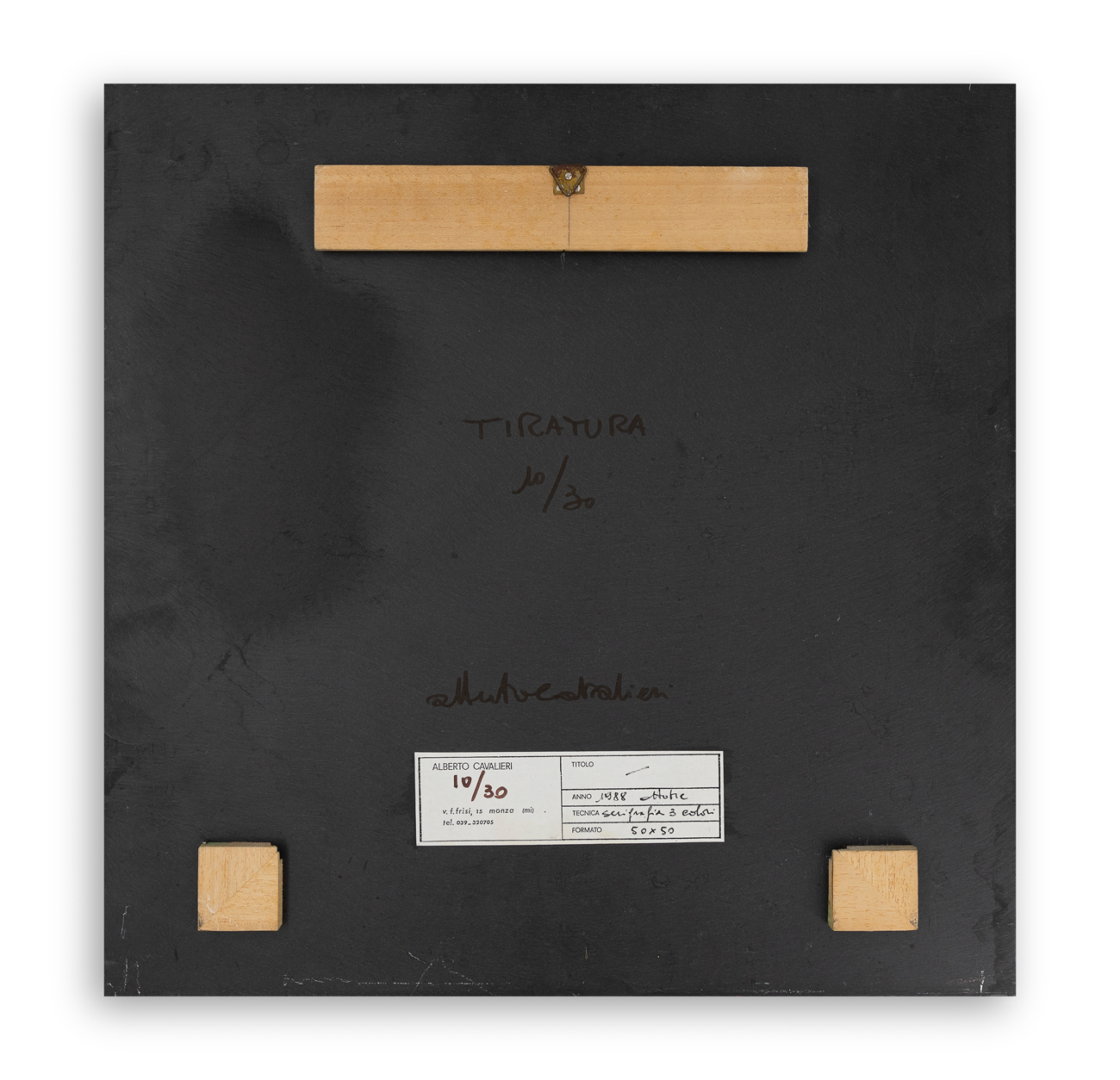Firma e numerazione (Esemplare 10/30) a pennarello al retro