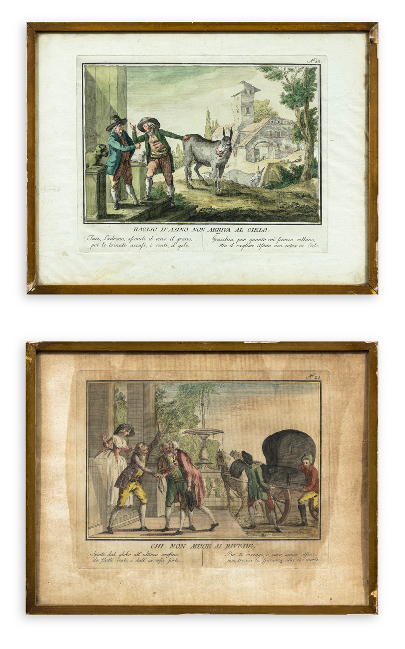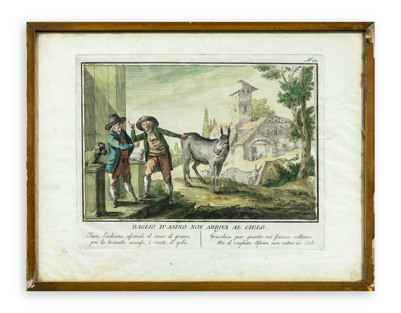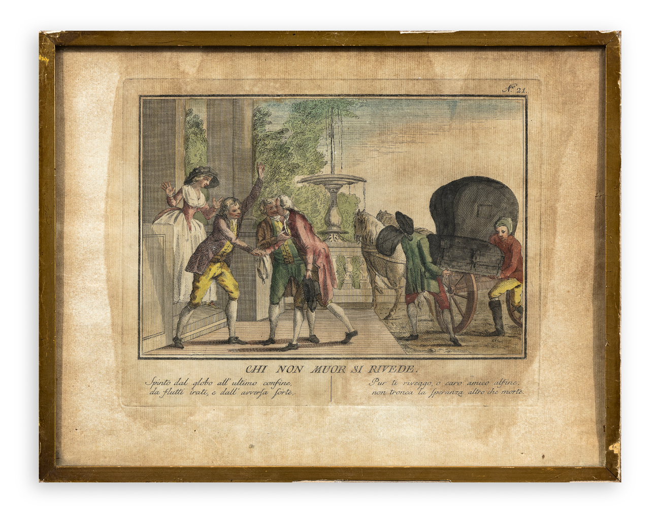Incisione all'acquaforte acquerellata in coloritura d'epoca
