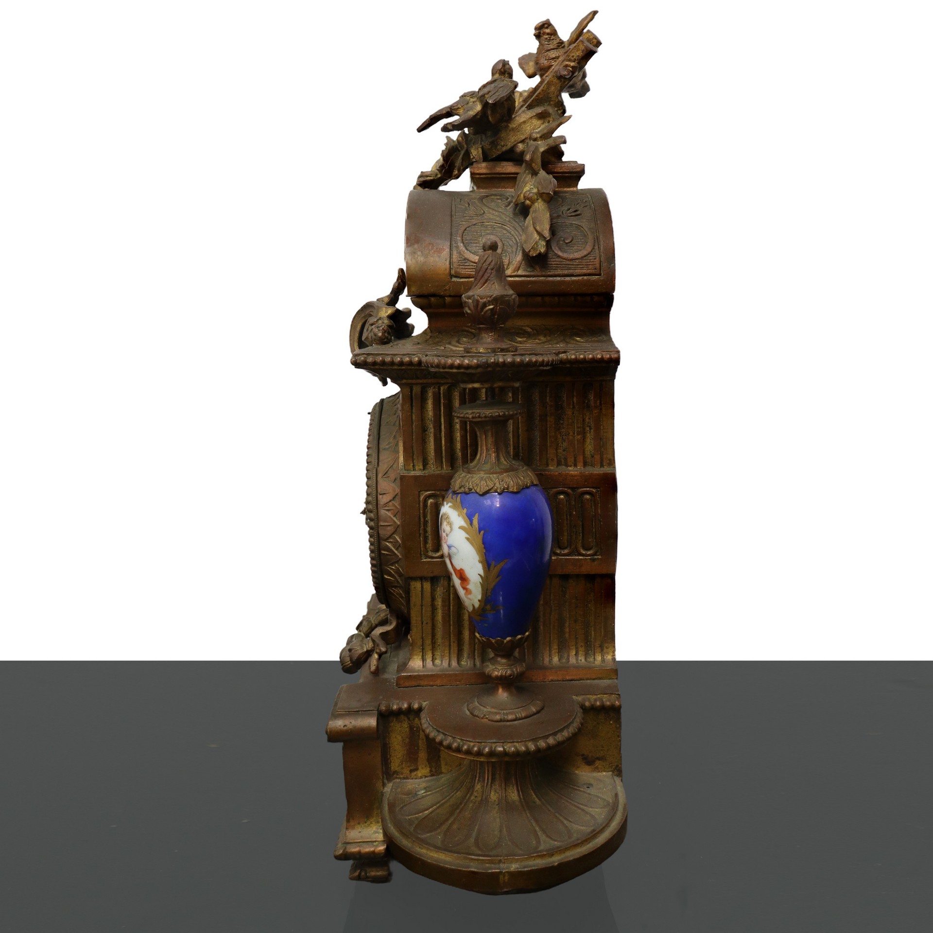 Orologio a pendolo da tavolo in bronzo dorato e porcellane applicate stile di Sevres H cm 38 - base cm 27x12 Stile Napoleone III, da revisionare