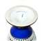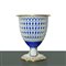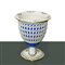 Vaso in porcellana a cesto bianco base a motivi floreali con vaso interno blu cobalto e orlo a motivi floreali