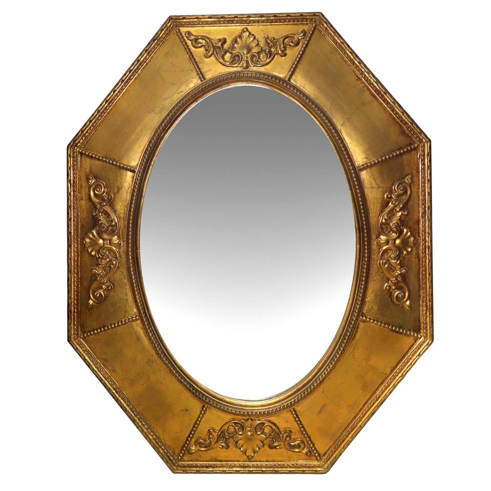 Specchiera ovale in cornice dorata ottagonale