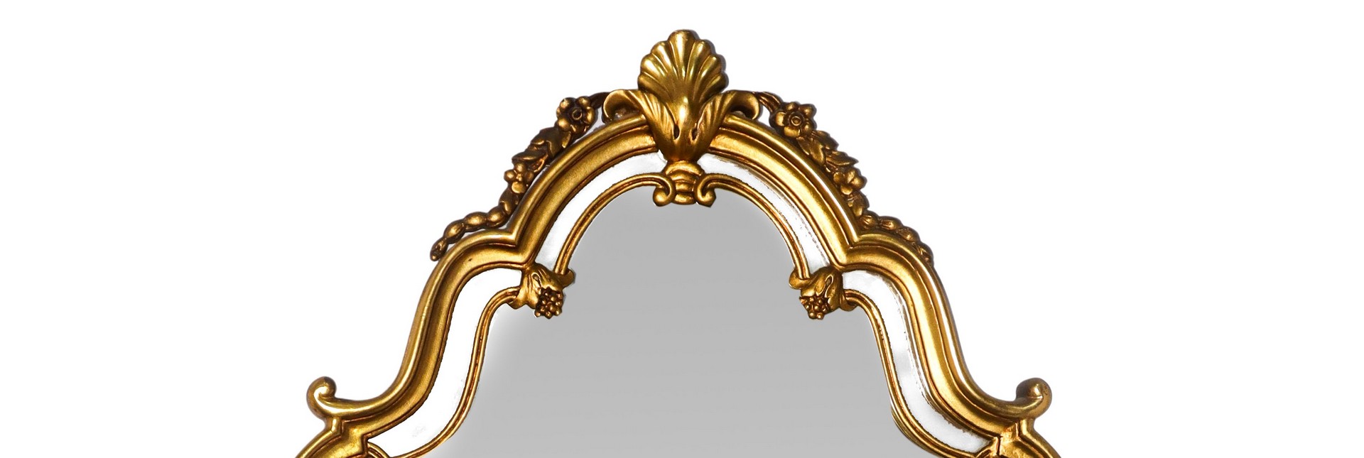 Specchiera sagomata in stile Rococò entro cornice con decori floreali