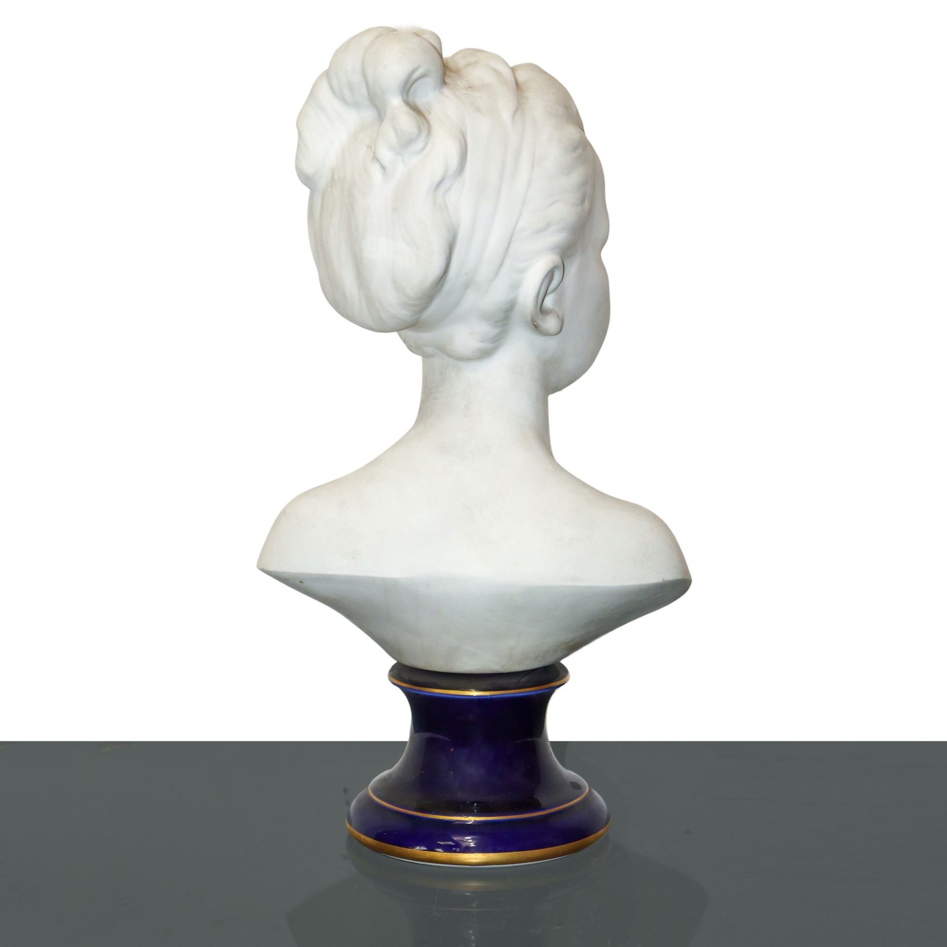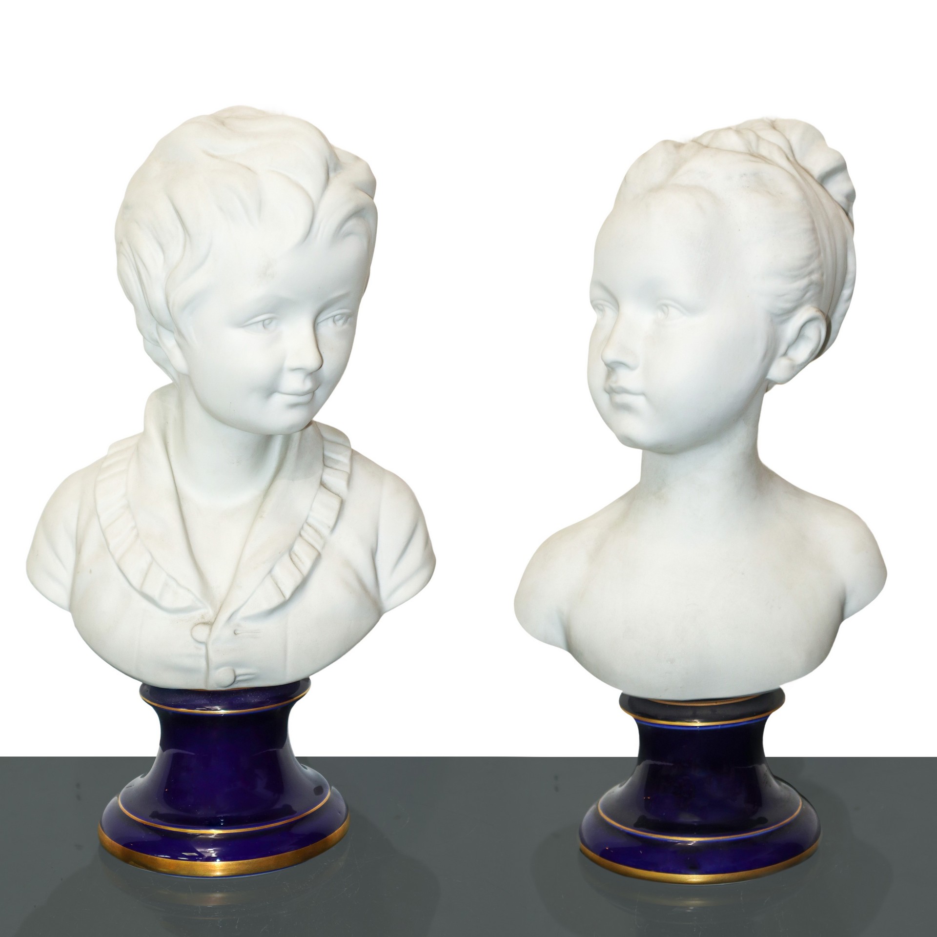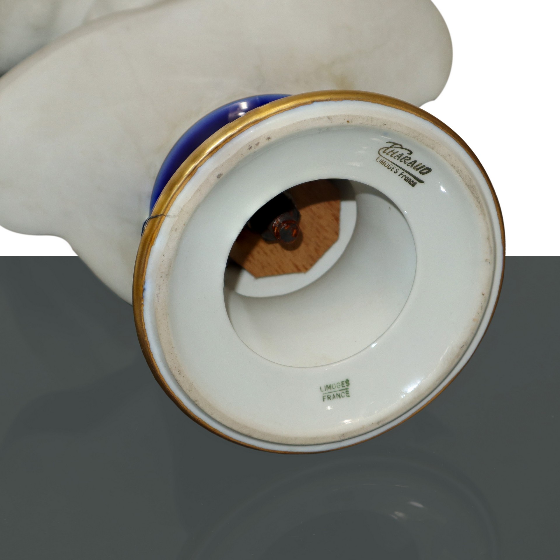 Limoges - Coppia di fanciulli in biscuit bianco con base in porcellana blu h cm 40 h cm 37 marchio della manifattura alla base