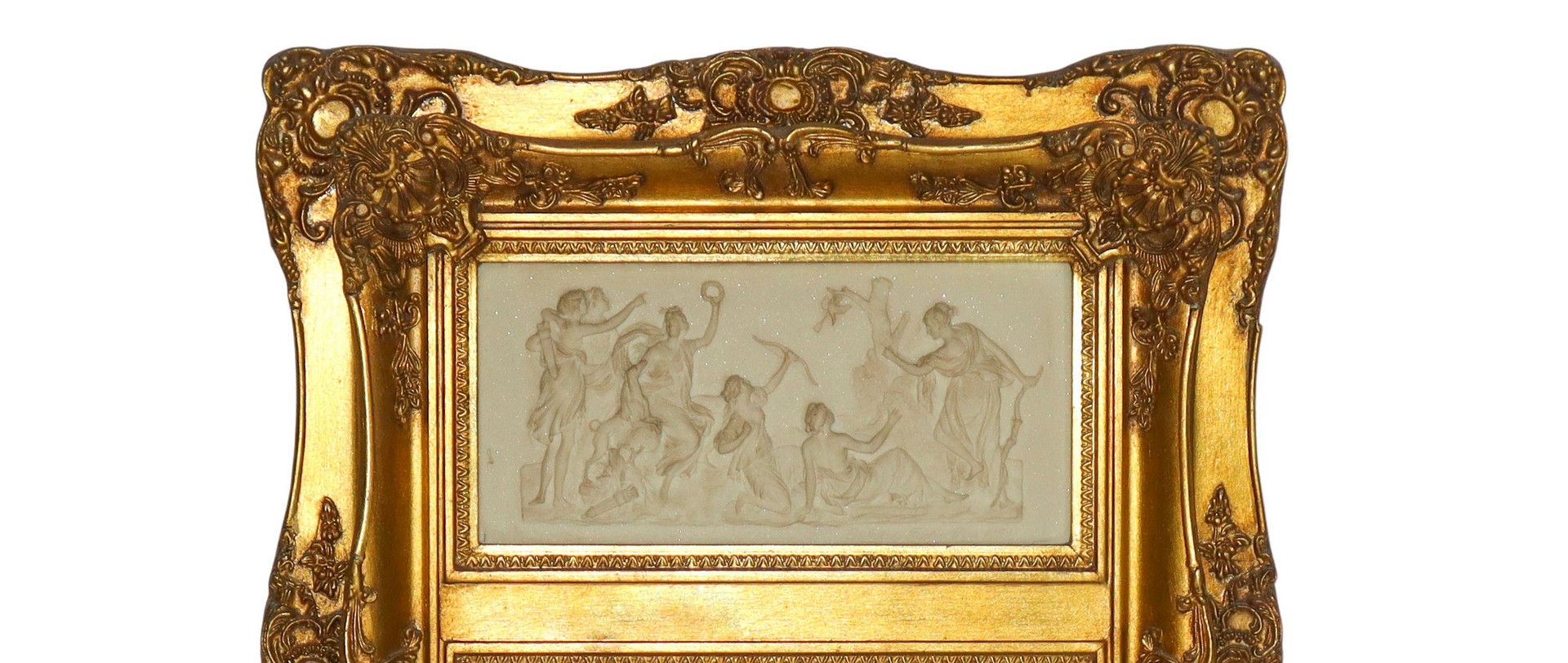 Lotto 45 | Specchiera entro cornice dorata con decori e bassorilievo neoclassico