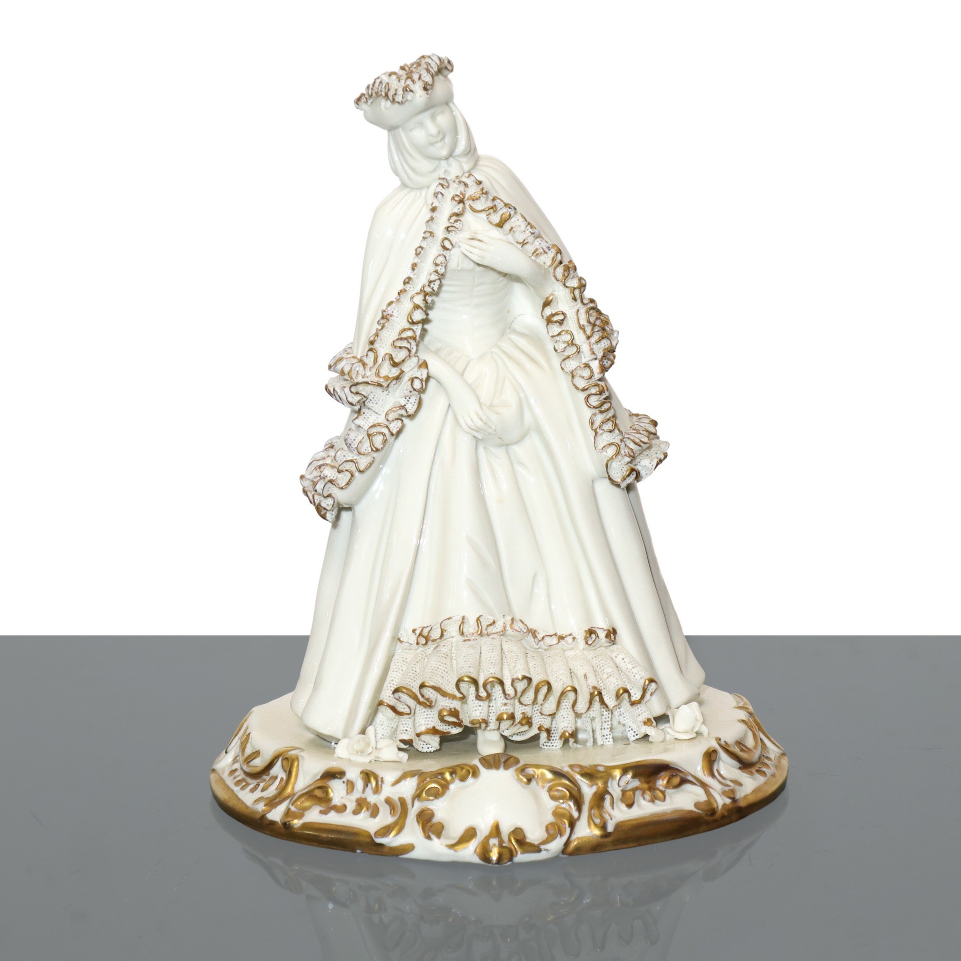 Lotto 55 | Capodimonte - Dama, figura in porcellana bianca di Capodimonte con dettagli oro