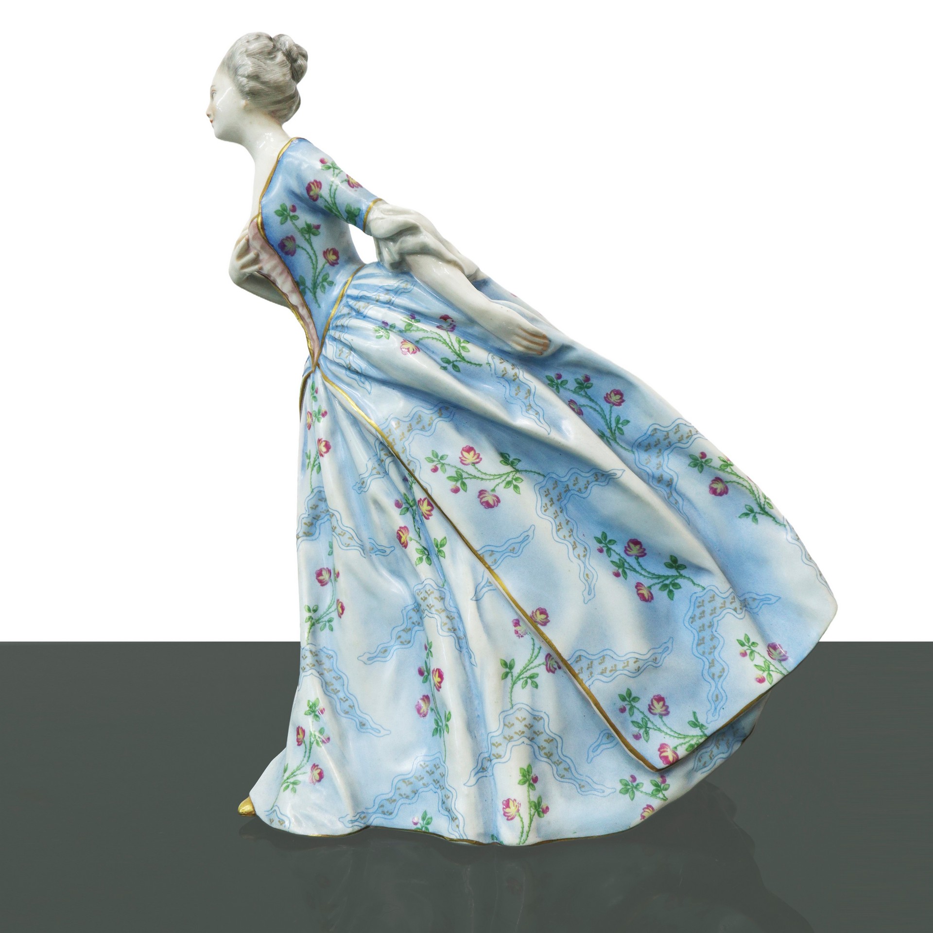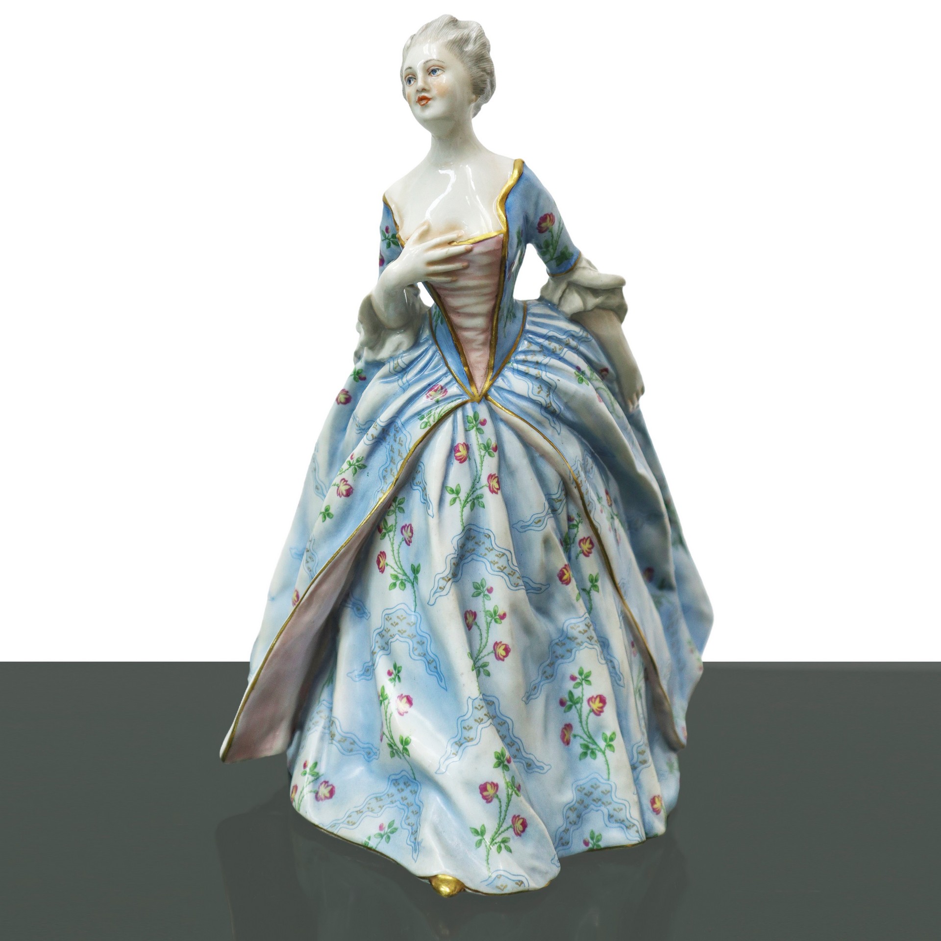 Capodimonte - Damina in porcellana policroma H cm 24,5x18,5 Marchio alla base.
