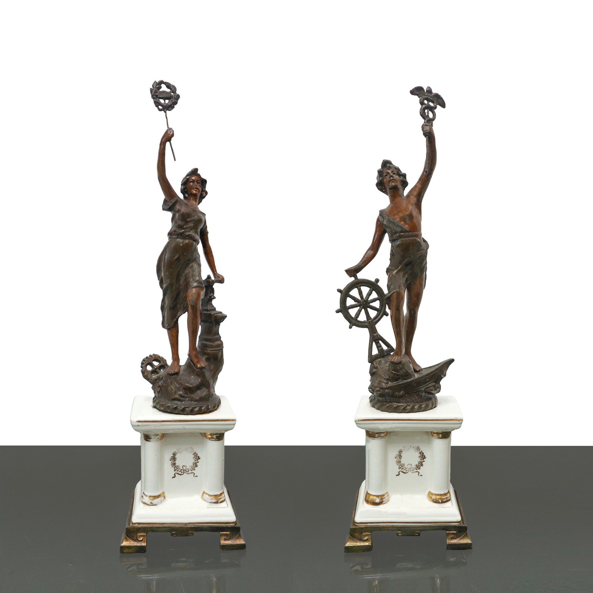 Coppia di figure scultoree su base di porcellana bianca