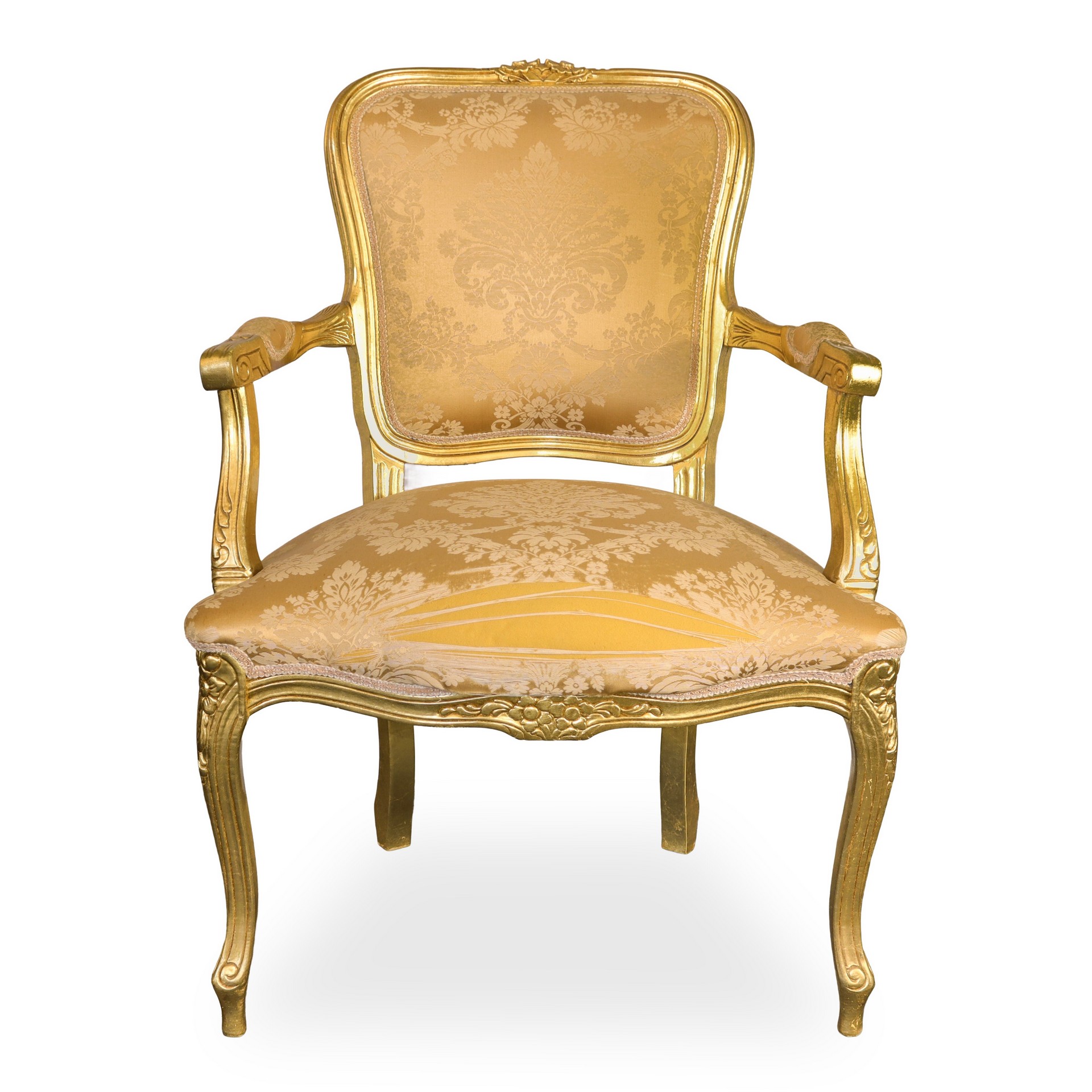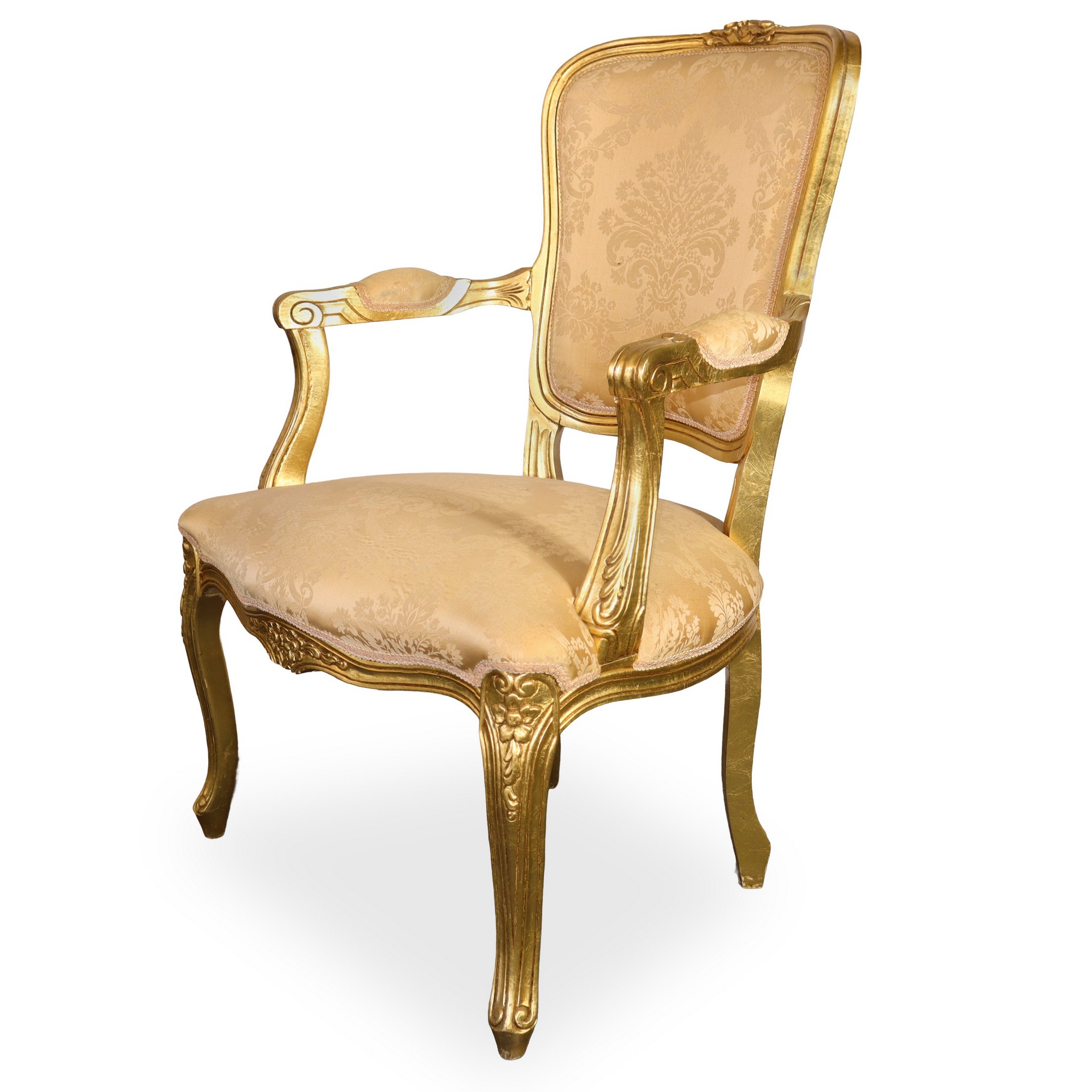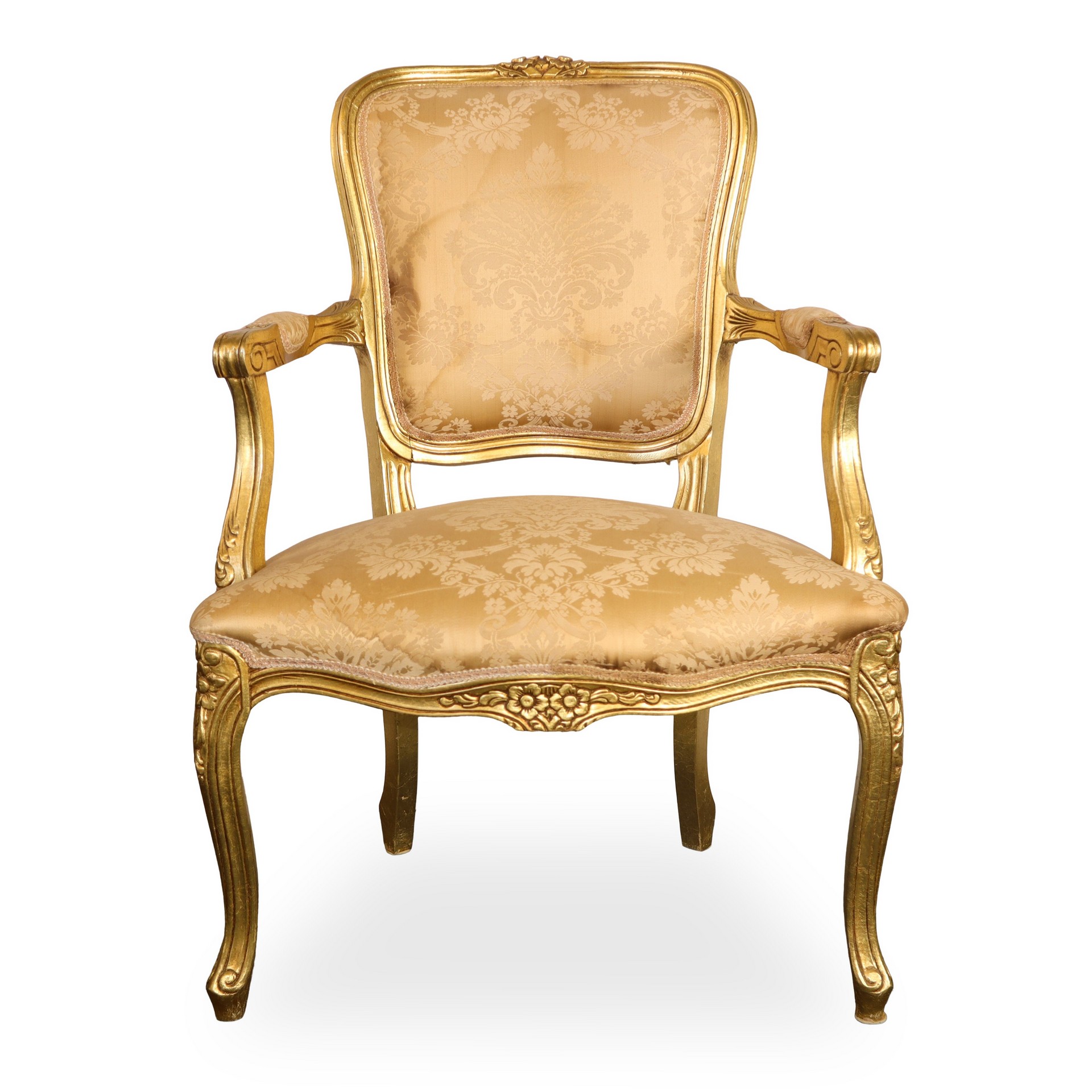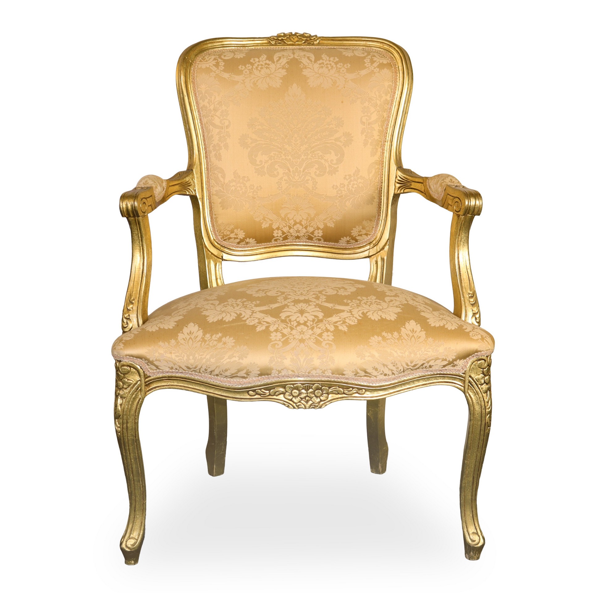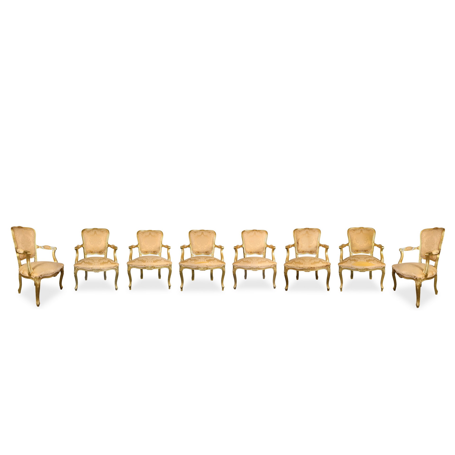 N°8 Sedie in legno dorato con tappezzeria damascata sui toni dei beige
