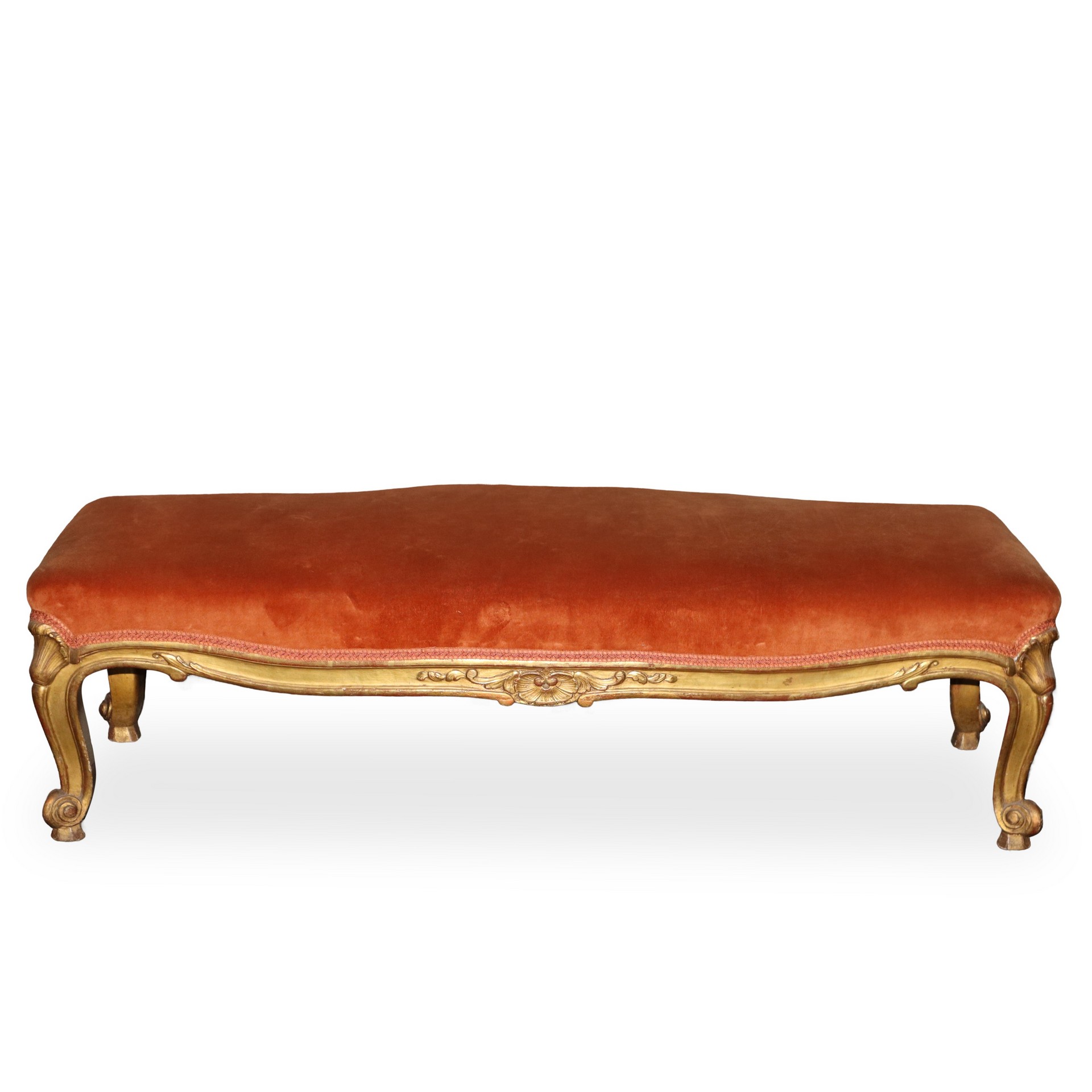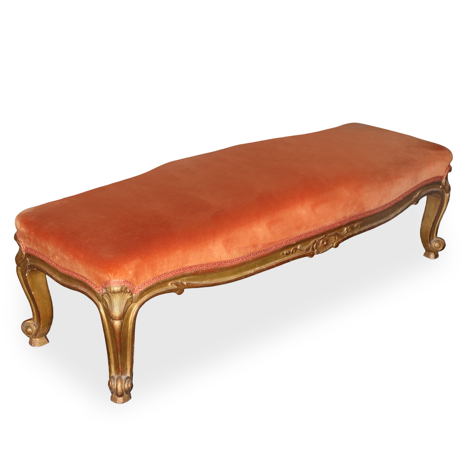Panchetta in legno dorato e tessuto h cm 35X119X45