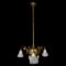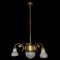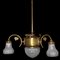 Lampadario Liberty a tre bracci in ottone dorato. Cm 103x63 Con coppa centrale in vetro, a 4 luci.