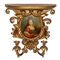 Applique dorata a due luci con decori vegetali ed ovale centrale con ritratto di dama