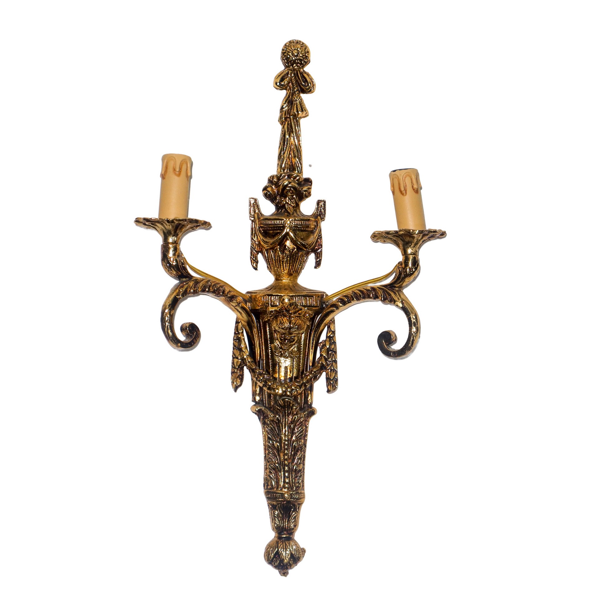 Applique dorato a due luci con decori