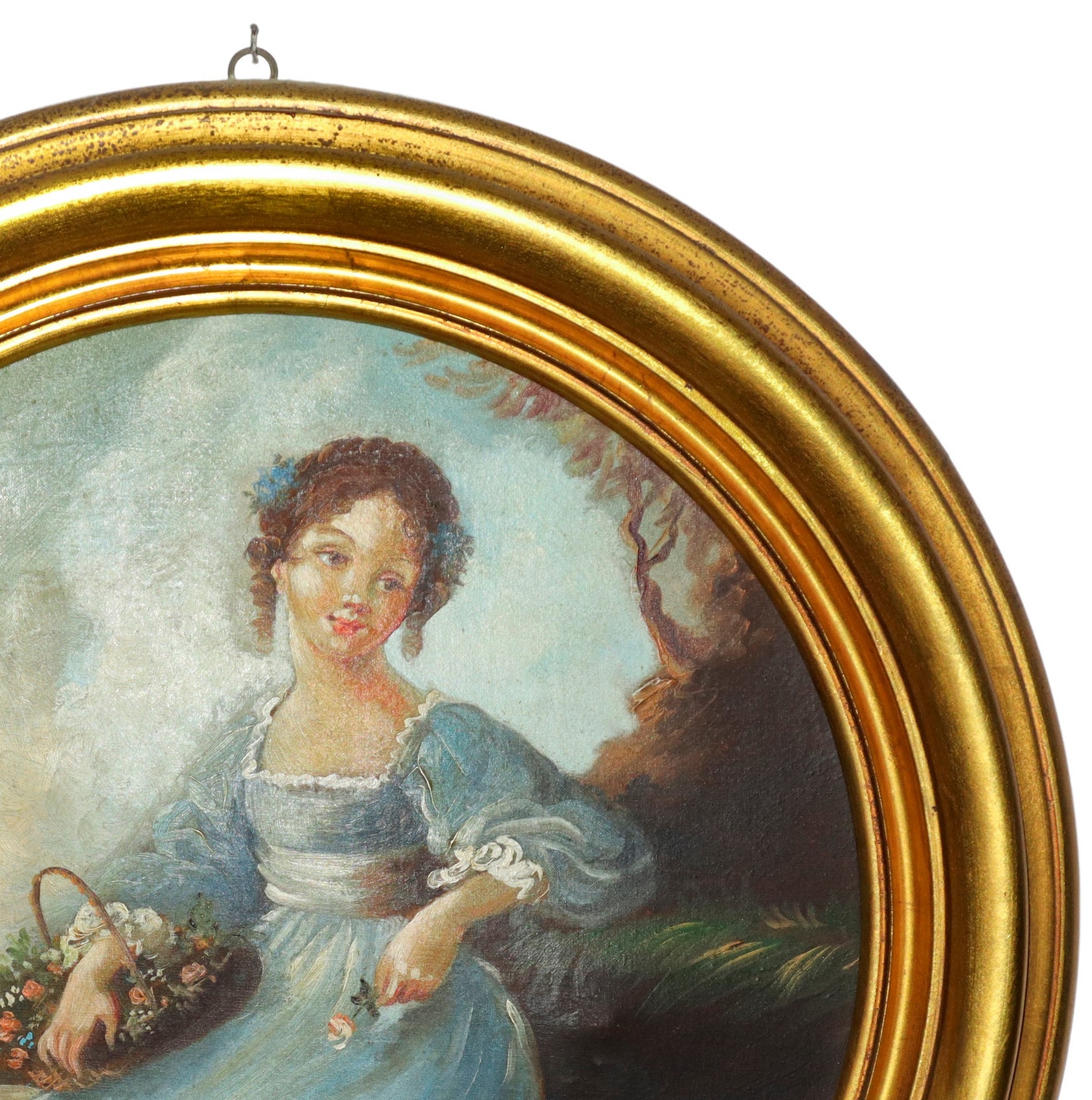 Tondo di dama con cesto di fiori diam. 39cm in cornice diam. 53cm
