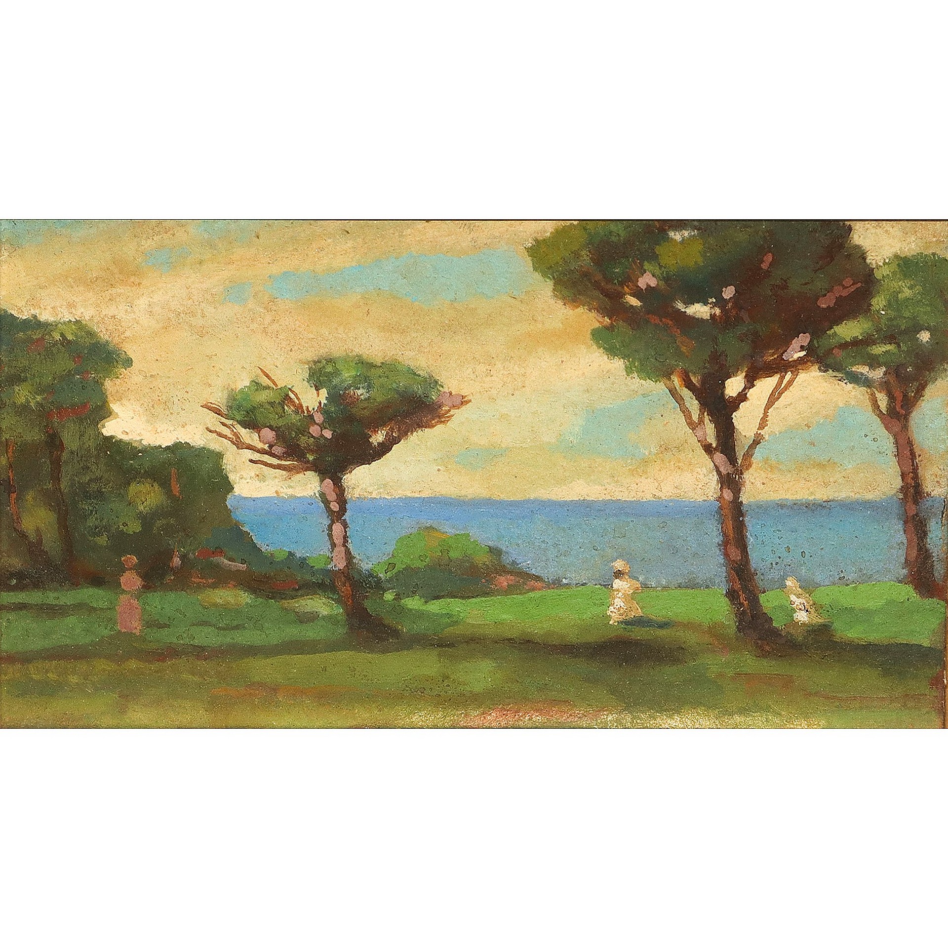 Lotto 161 | Prato con alberi e personaggi sul mare, early 20° secolo