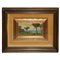 Prato con alberi e personaggi sul mare, early 20° secolo h cm 12,5X19,5 in cornice h cm 37,5X45,5 olio su cartone